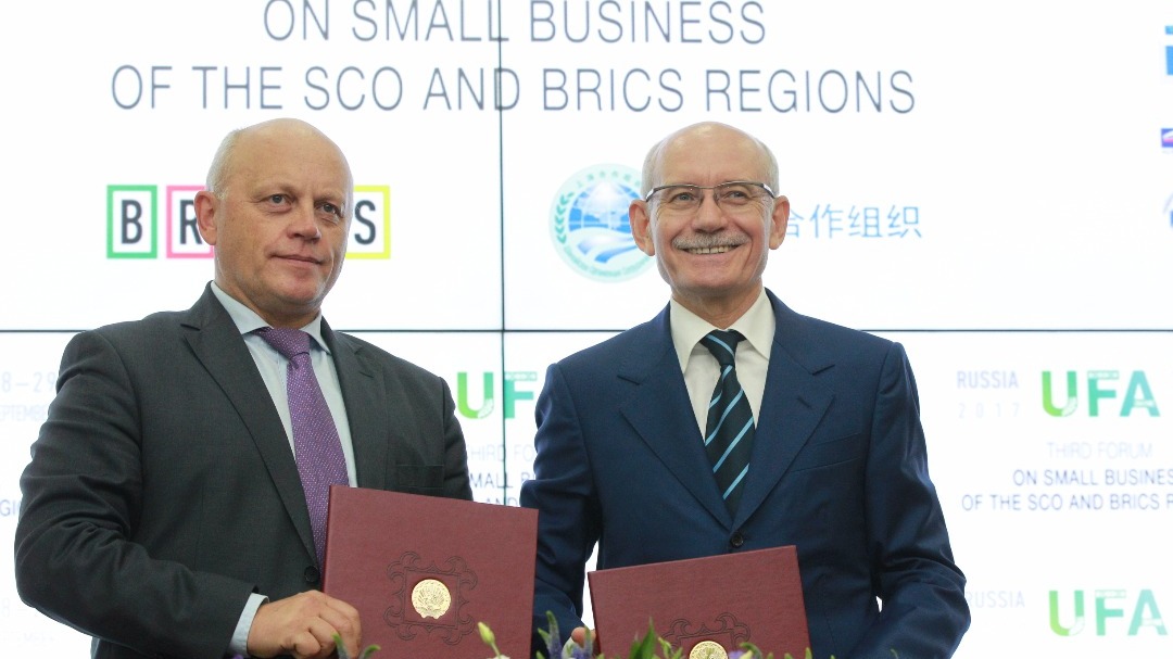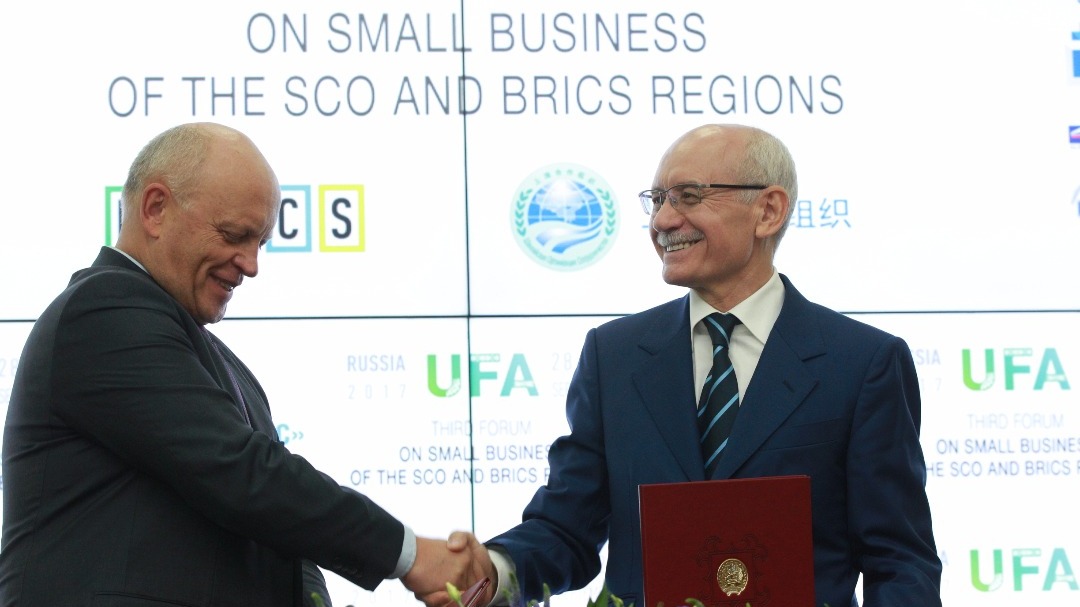 УФА, 28 сен 2017. /ИА «Башинформ», Ольга Муртазина/. В Уфе на полях III Форума малого бизнеса регионов стран-участниц ШОС и БРИКС глава Башкирии Рустэм Хамитов и омский губернатор Виктор Назаров подписали соглашение о сотрудничестве в сфере экономики и культуры. Прежде всего сотрудничество подразумевает создание первого в стране межрегионального нефтехимического кластера. «Нефтехимия развивается с учетом малого среднего бизнеса: новые направления, которые неинтересны крупному бизнесу, он готов отдавать на своих площадках бизнесу малому. В программу соглашения входит обмен лучшими наработками. Мы объединились, потому что есть новые технологии и у Башкирии, и у нас, развивать их отдельно сложнее и дороже», — отметил Виктор Назаров.