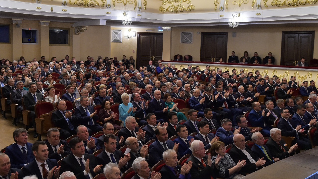 УФА, 10 окт 2017. /ИА «Башинформ»/. Глава Башкортостана Рустэм Хамитов выступил на торжественном собрании, посвящённом Дню Республики, которое состоялось в Башкирском государственном театре оперы и балета.