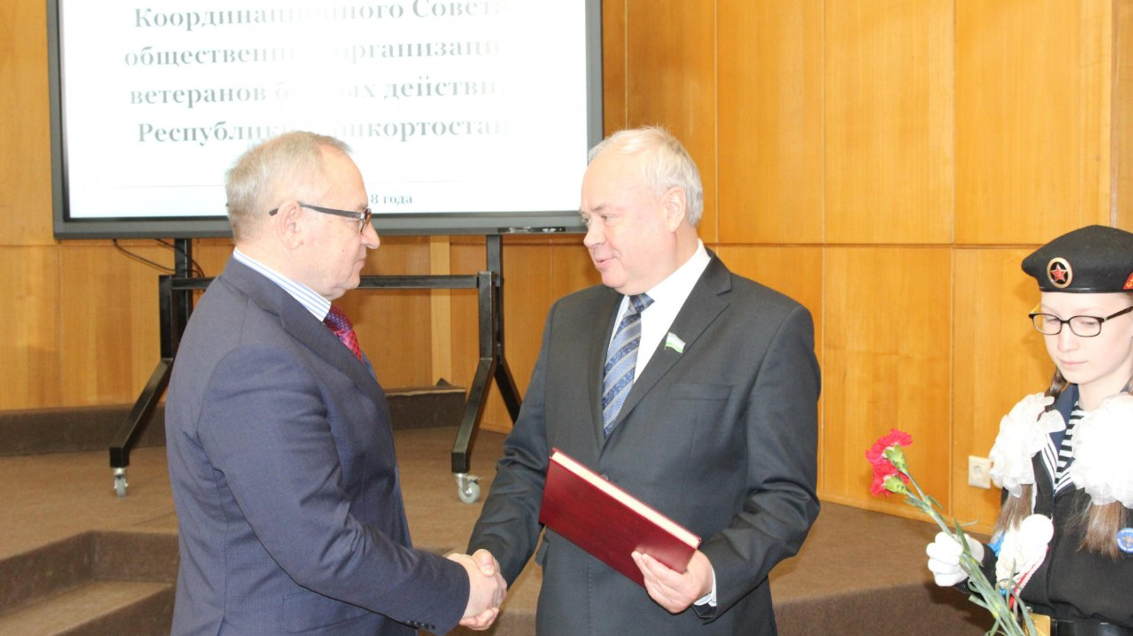 УФА, 7 фев 2018. /ИА «Башинформ», Галия Набиева/. Спикер Госсобрания Башкортостана Константин Толкачев вручил награды республиканского парламента участникам боевых действий в Афганистане и зонах локальных конфликтов. Награждение состоялось в Доме Государственного Собрания в преддверии 29-й годовщины со дня вывода ограниченного контингента Советских войск из Афганистана. За 10 лет военного конфликта в Афганистане прошли службу более 10 тысяч жителей Башкортостана, из них 350 человек погибли или пропали без вести, пояснили в пресс-службе парламента.