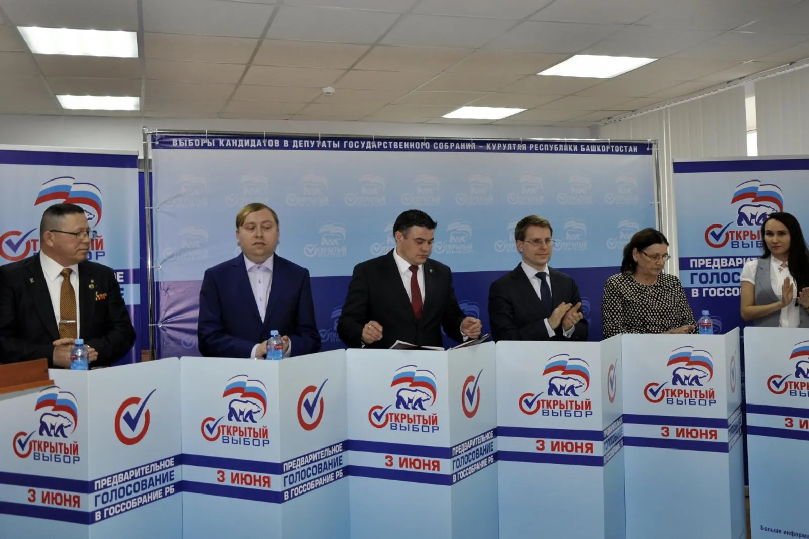 УФА, 25 апр 2018. /ИА «Башинформ», Галия Набиева/. В Уфе состоялись очередные дебаты в рамках предварительного голосования «Единой России». Участниками стали председатель общественной организации инвалидов «Союз «Чернобыль» города Уфы Фарит Бахметов, экономист Евгений Дзюба, представитель Уфимского филиала ООО «РН-Бурение» Владислав Евдокимов, маркетолог ООО «ПТФ-Башторгсервис» Алексей Прокофьев, депутат Госсобрания РБ Римма Утяшева и руководитель регионального отделения «Молодой Гвардии» Люция Юлуева. Встреча прошла на тему «Обновление партии «Единая Россия»: от партии власти к партии путинского большинства».