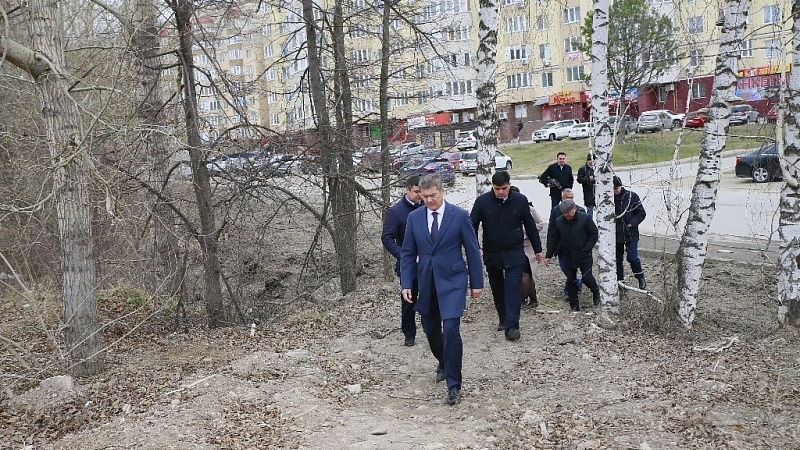В микрорайоне «Южный» Радий Хабиров осмотрел территорию будущего парка «Каменная река». До массовой застройки здесь были глубокие каменистые овраги, которые шли до каменной переправы через реку Белая. В сквере предполагается обустройство спортивных площадок, беговой и пешеходной дорожек, зоны отдыха.