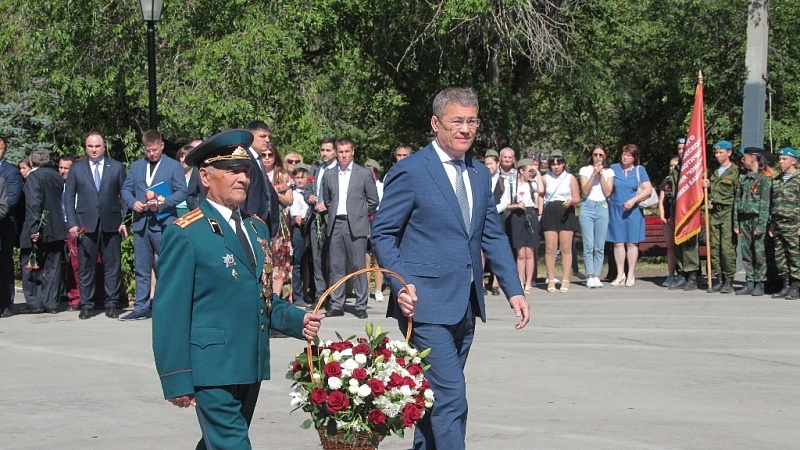 «Светлая память всем тем, кто сложил головы в боях, кто умер в госпиталях и концлагерях», — добавил он.В завершение митинга врио главы Башкирии Радий Хабиров, члены республиканского правительства, другие официальные лица, ветераны и участники боевых действий возложили цветы к мемориалу «Вечный огонь».