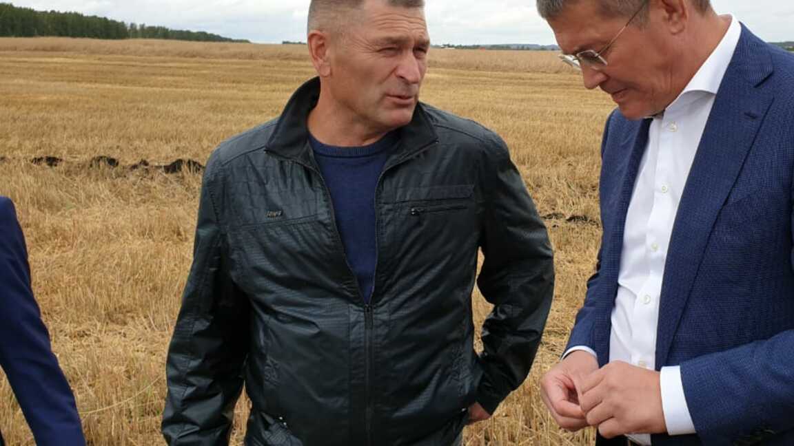 УФА, 7 авг 2019. /ИА «Башинформ», Азат Гиззатуллин/.На полях одного из крупнейших в республике сельхозпредприятий - СП «Базы» Чекмагушевского района врио Главы РБ Радий Хабиров ознакомился с ходом уборочной страды.