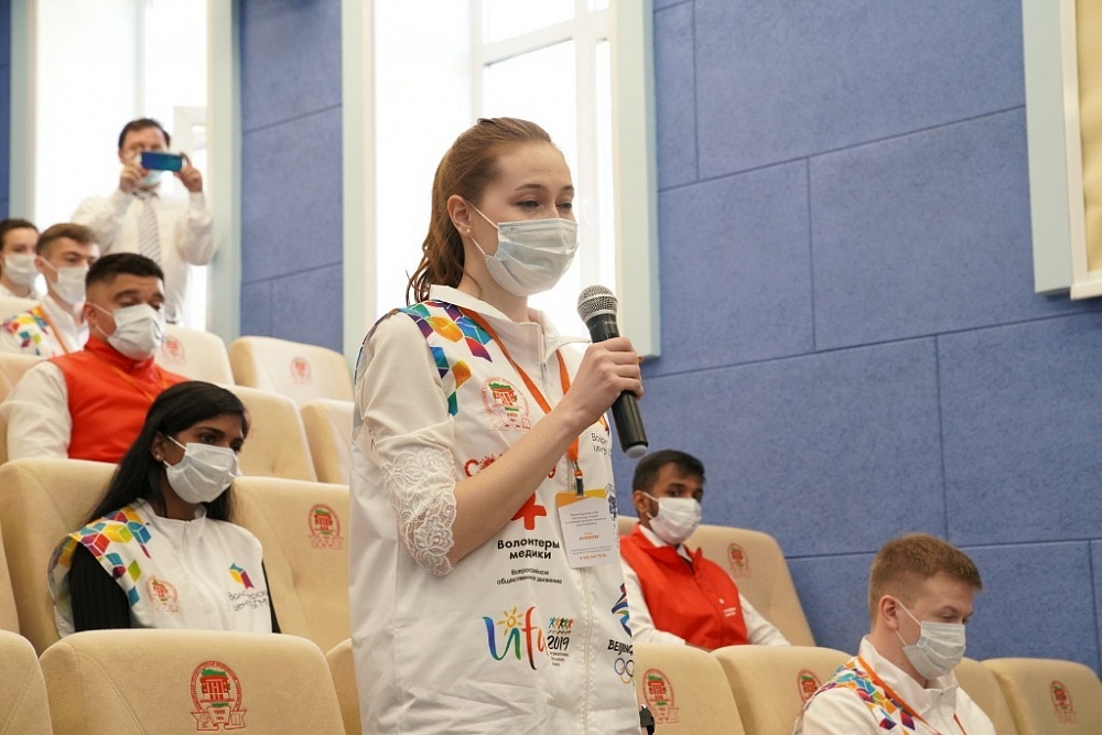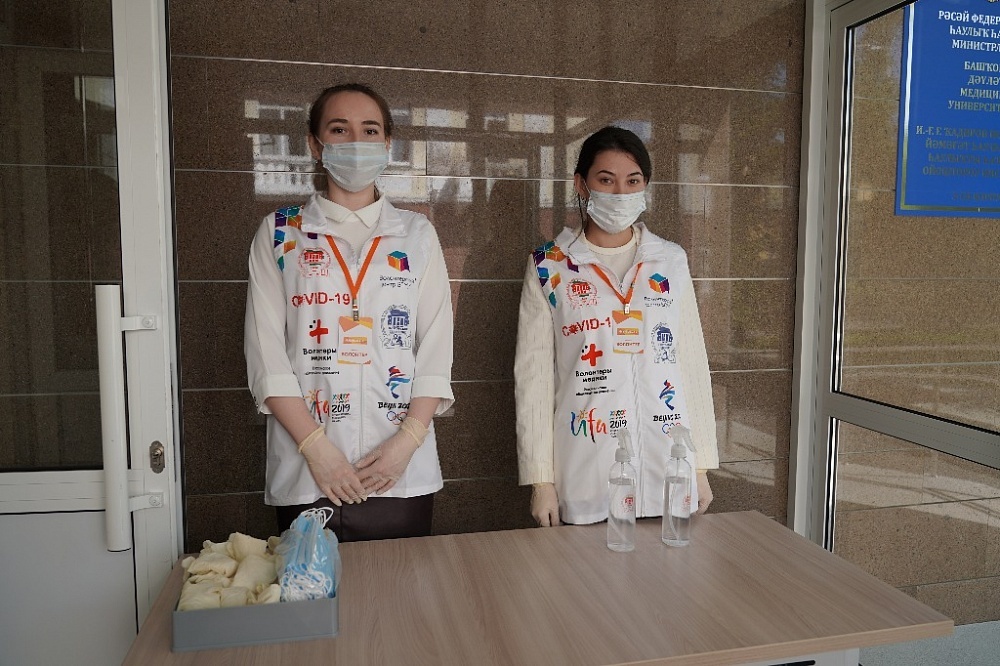 В завершение встречи студенты подарили Михаилу Мурашко и Радию Хабирову форменные жилетки волонтерского центра БГМУ.
