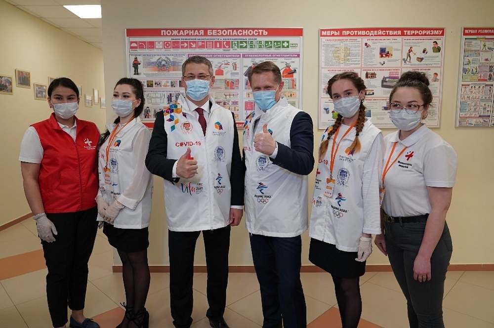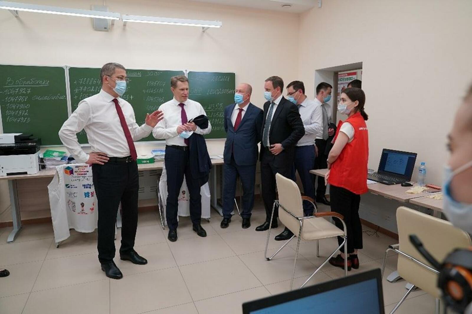 В Уфе министр здравоохранения России Михаил Мурашко и глава Башкортостана Радий Хабиров посетили волонтерский центр Башкирского государственного медицинского университета.