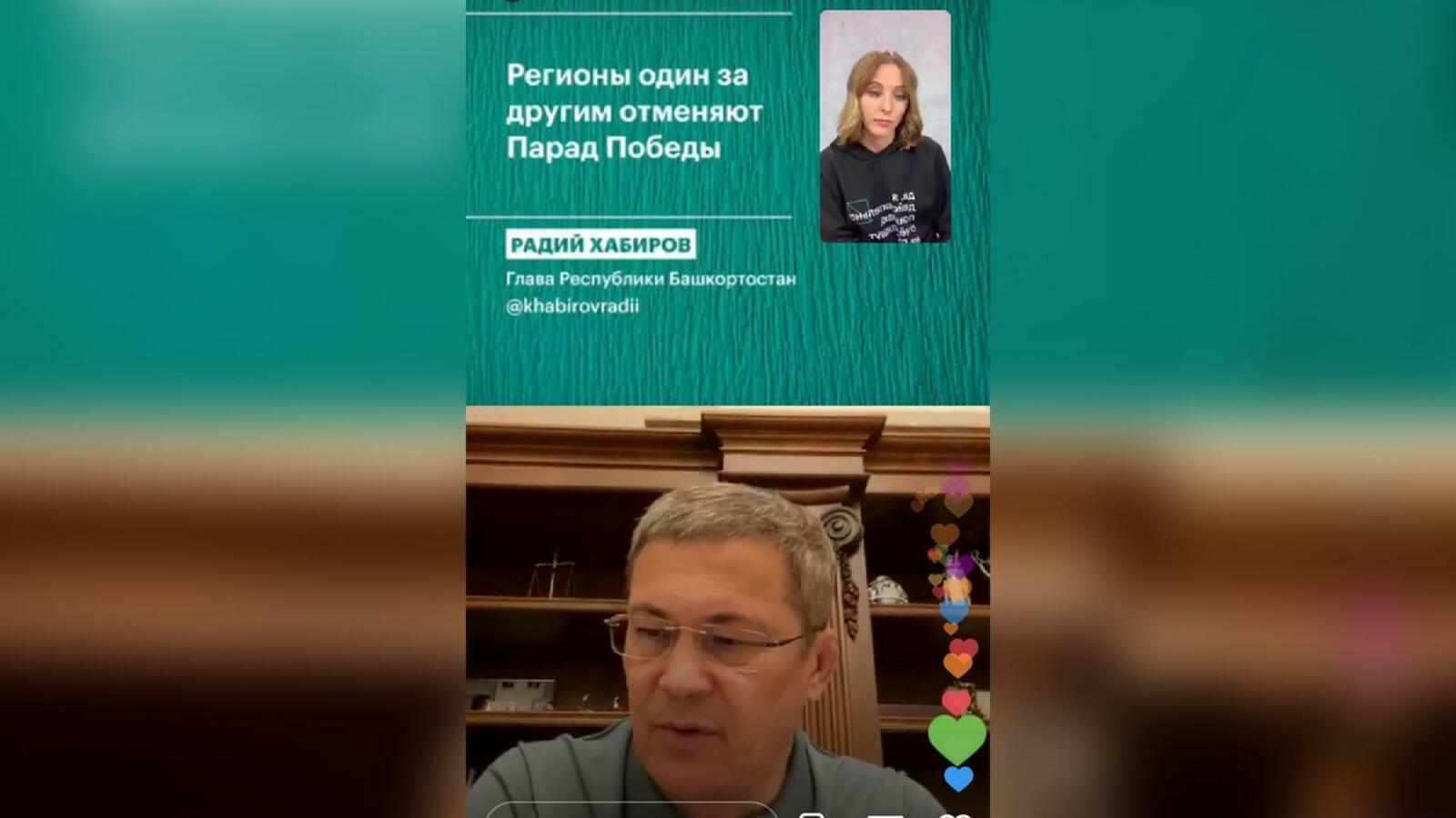Радий Хабиров принял участие в вечернем инфо-шоу РБК в инстаграм ЧЭЗ Next. На вопрос ведущей об отмене Парада Победы в Башкортостане глава республики рассказал, что в регионе будет происходить в этот день.