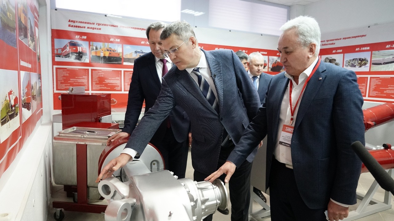 Радий Хабиров и Александр Потапов ознакомились с работой автоматно-револьверного, механосборочного, прессово-сварочного и сборочного цехов. Им также показали «Витязи», которые использует российская армия в суровых условиях Арктики, и болотоходы.