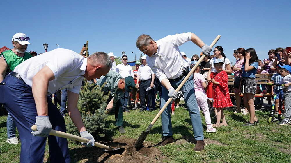 В парке Победы Глава региона принял участие и в посадке деревьев в рамках акции «Зеленая Башкирия», которая проходит в эти дни по всей республике.