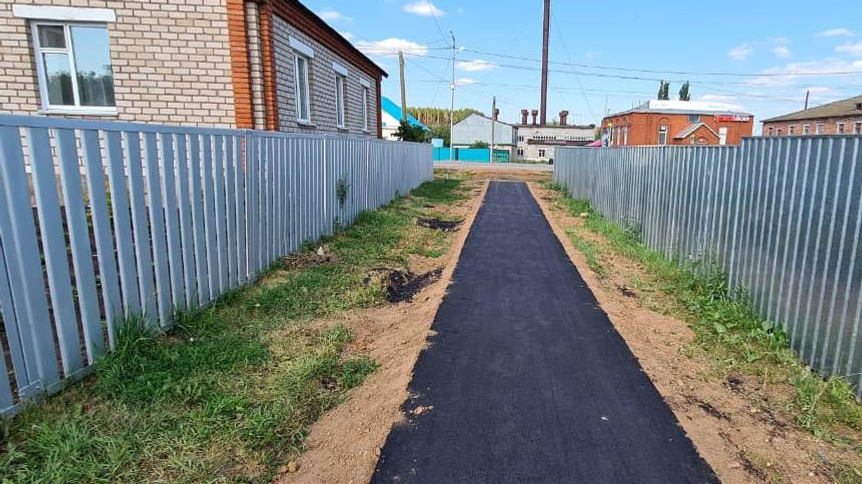 Второй проект реализован в райцентре Бураевского района – селе Бураево. Заасфальтирована пешеходная дорожка общей протяженностью 230 метров от улицы Ленина к гимназии № 2 и средней школе № 1. Дорожные работы выполнены силами Бураевского дорожного ремонтно-строительного управления.