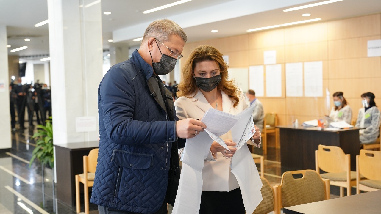 Глава Башкортостана Радий Хабиров вместе с супругой Каринэ Хабировой сегодня проголосовали на выборах депутатов Государственной Думы России на избирательном участке №109, который расположен в Государственном концертном зале «Башкортостан».