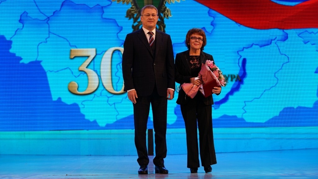 Торжественная часть праздничного мероприятия продолжилась вручением сотрудникам и ветеранам прокуратуры государственных и ведомственных наград, а также концертной программой с участием солистов и ведущих творческих коллективов республики, сотрудников республиканского надзорного ведомства. Почётной грамотой Республики Башкортостан отметили Владимира Андреева и Зубару Муфтахову, а почётного звания «Заслуженный юрист Республики Башкортостан» удостоили Рабиса Еникеева, Фанзуру Мухаметзянову, Валерия Рыжова и Фаниха Хайруллина – ветеранов республиканской прокуратуры.