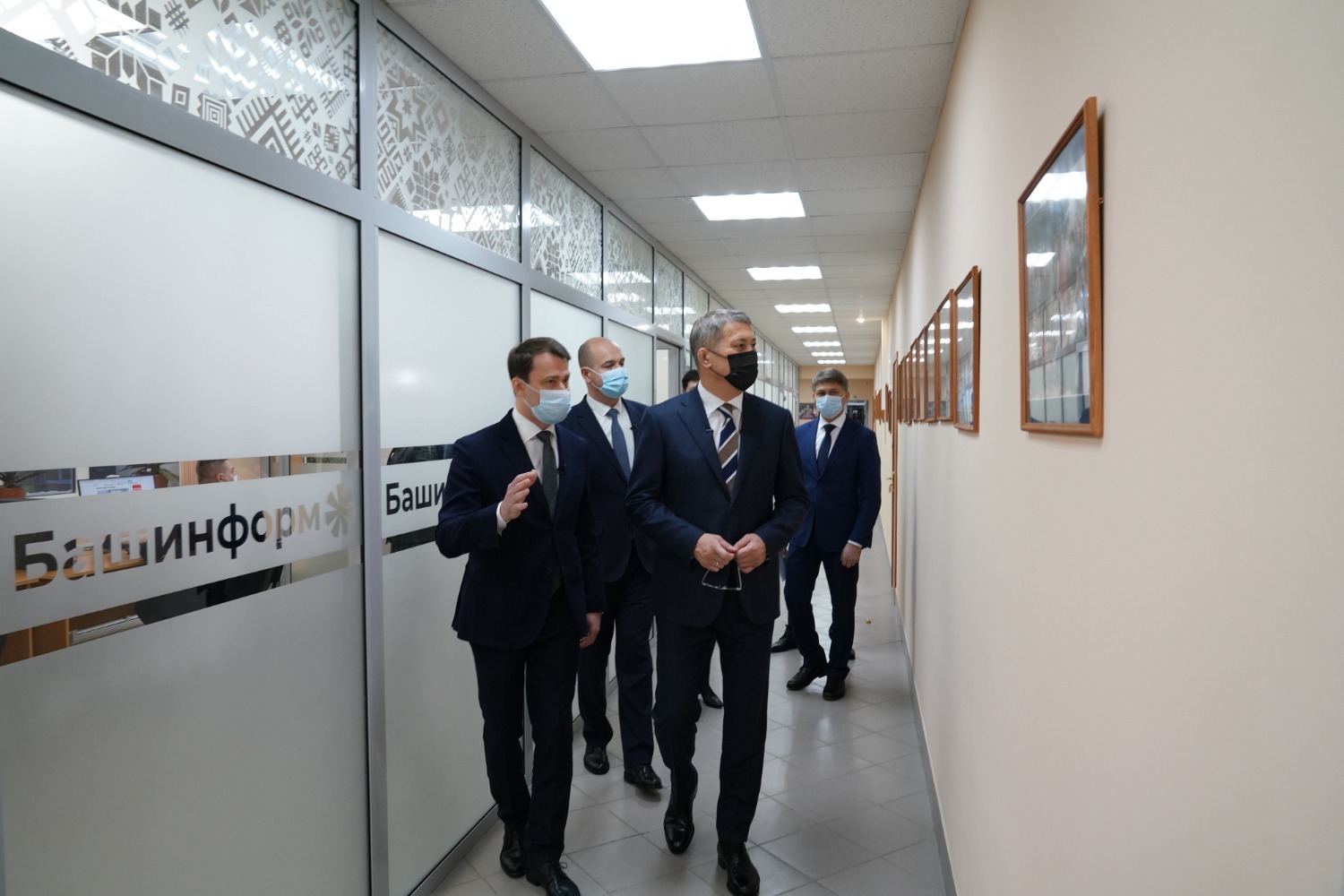 Радий Хабиров также посетил ньюсрум информационного агентства, где ознакомился с работой редакции. По словам главного редактора ИА «Башинформ» Руслана Шарафутдинова, информационный поток в 3000 новостей в месяц в режиме 24/7 формируют всего 15 журналистов.