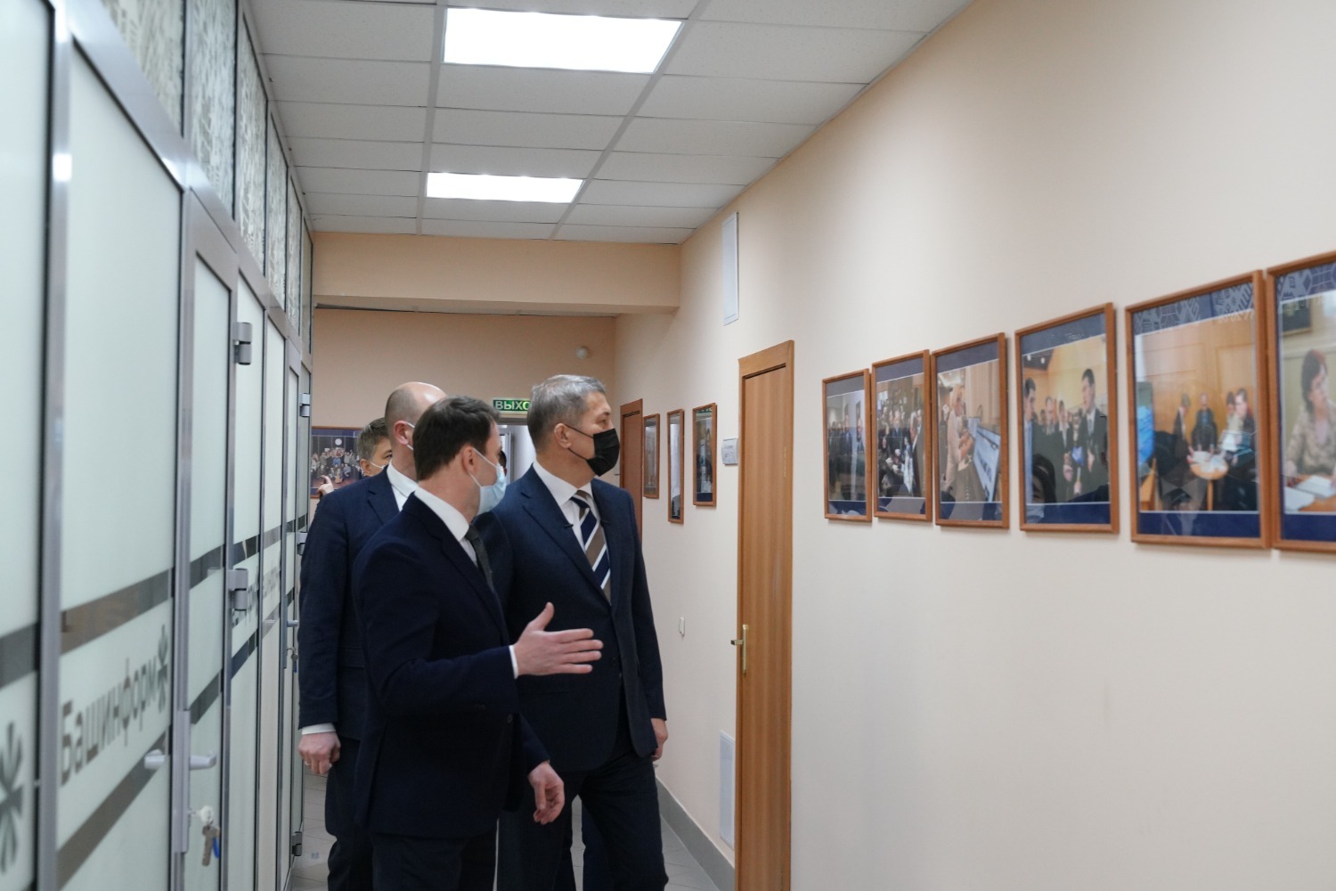 Сегодня, 17 января, Глава Башкортостана Радий Хабиров посетил информационное агентство «Башинформ». Свой визит он начал с осмотра конференц-холла, где руководитель Агентства по печати и средствам массовой информации Башкортостана Максим Ульчев и и.о. генерального директора ИА «Башинформ» Диля Сагитова рассказали о планах по реконструкции зала, в котором ремонт не проходил с начала 2000-х годов.