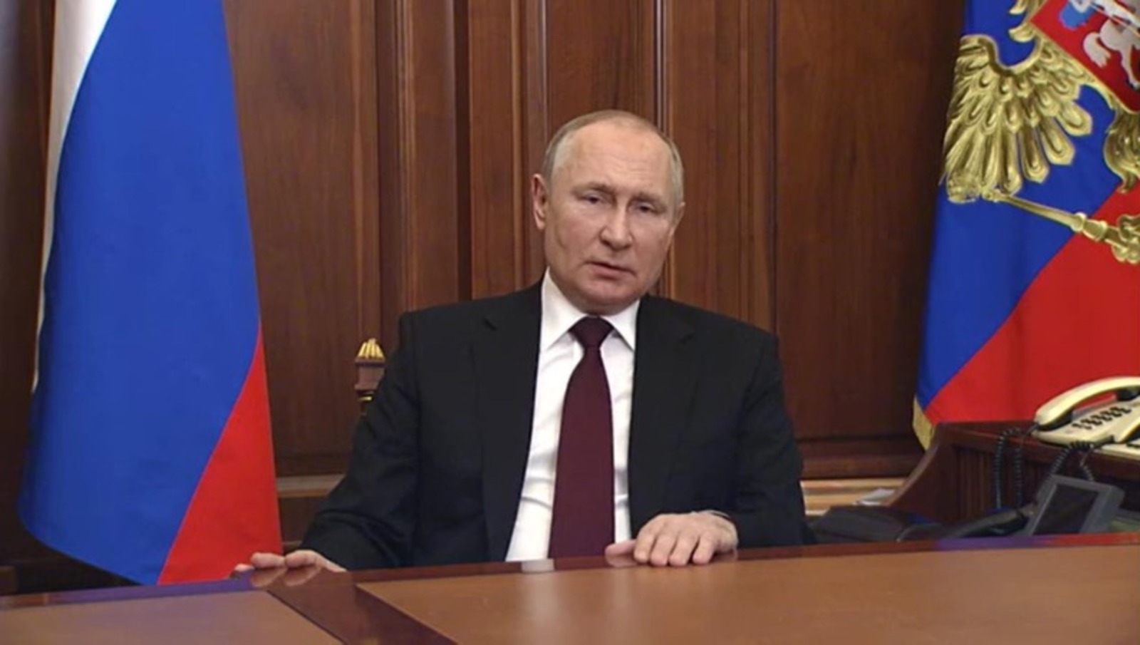 Президент России Владимир Путин утром 24 февраля выступил с экстренным обращением к гражданам страны. Трансляцию вел телеканал «Россия-24». Глава государства заявил о начале спецоперации военных сил РФ на территории республик Донбасса.