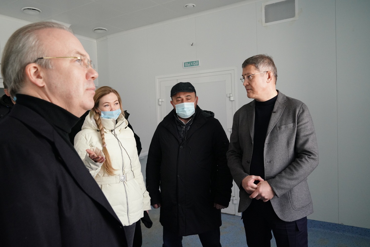 Глава Башкортостана осмотрел палаты и боксы будущей больницы и провел рабочее совещание по вопросу строительства клинико-диагностического инфекционного центра.