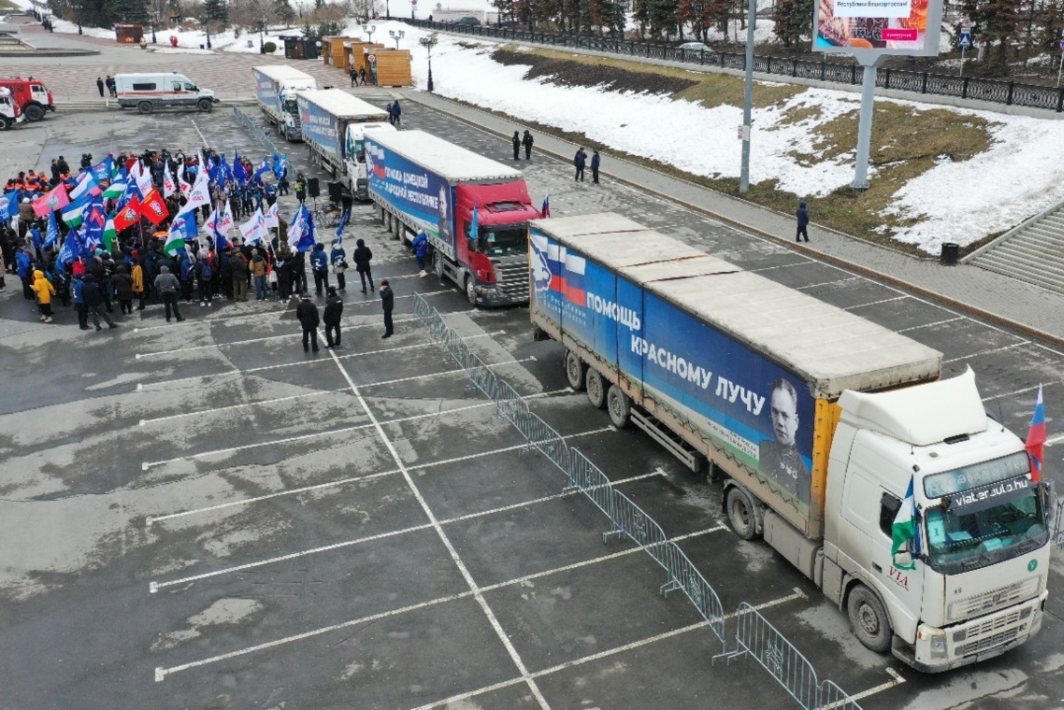 Сегодня из Уфы, с площади конгресс-холла «Торатау», на Донбасс отправилась третья гуманитарная колонна. Она состоит из семи машин и 18 человек сопровождения. Впереди — долгая дорога, более 2000 км и не менее 30 часов постоянной езды почти без остановок. Гуманитарная помощь прибудет в Донецк, Луганск и Петровское, где похоронен Герой России, легендарный комдив Минигали Шаймуратов.