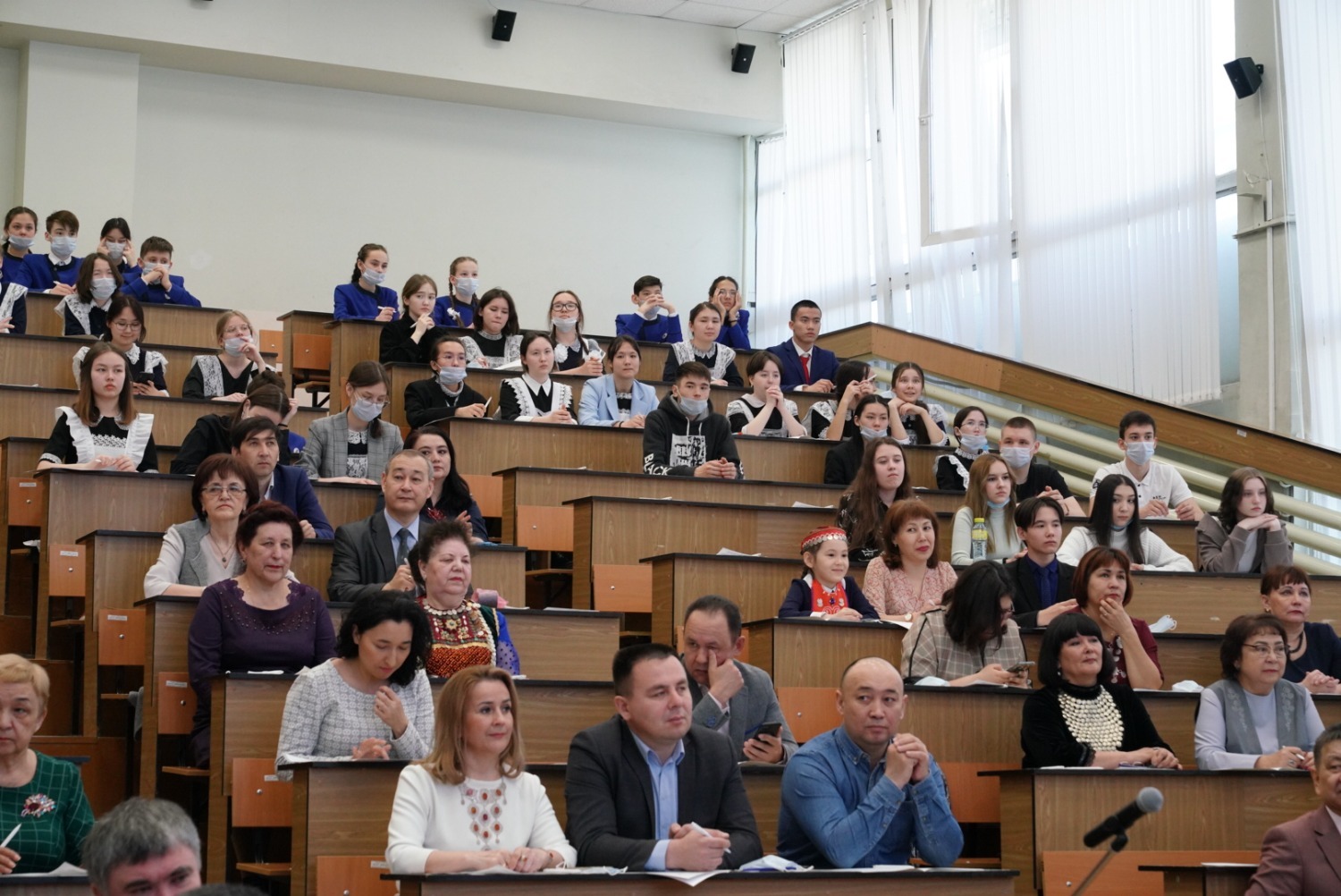 Декан факультета башкирской филологии и журналистики БГУ Гульфира Абдуллина пожелала всем участникам успешного написания диктанта, а народный артист Башкортостана Азамат Тимеров исполнил неофициальный гимн башкирского народа «Урал»