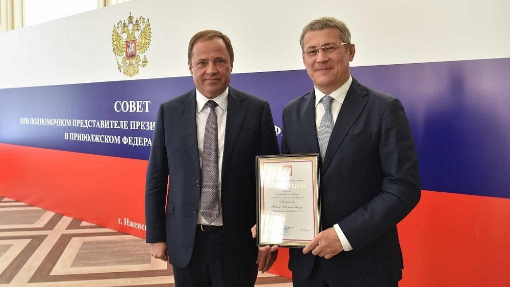 В завершение заседания Совета Игорь Комаров вручил благодарность Президента России Главе Башкортостана Радию Хабирову за вклад в поддержку и проведение общественно значимых проектов.