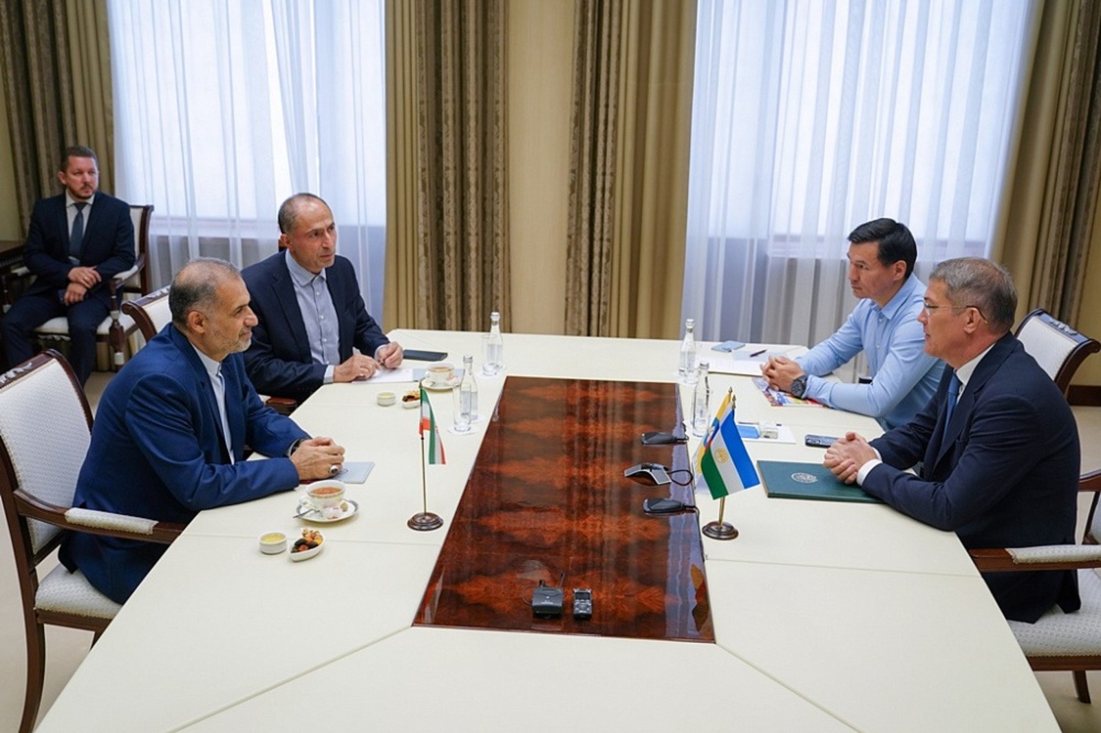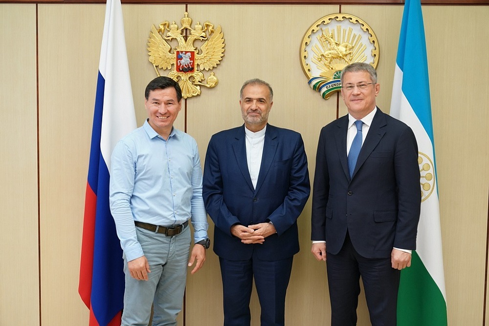 Сегодня Глава Башкортостана Радий Хабиров встретился с Чрезвычайным и Полномочным послом Исламской республики Иран в Российской Федерации Каземом Джалали. В беседе также принял участие Глава Калмыкии Бату Хасиков. Стороны обсудили вопросы расширения сотрудничества и реализации совместных проектов, в том числе создание транспортно-логистического хаба на Каспийском море с участием Калмыкии.