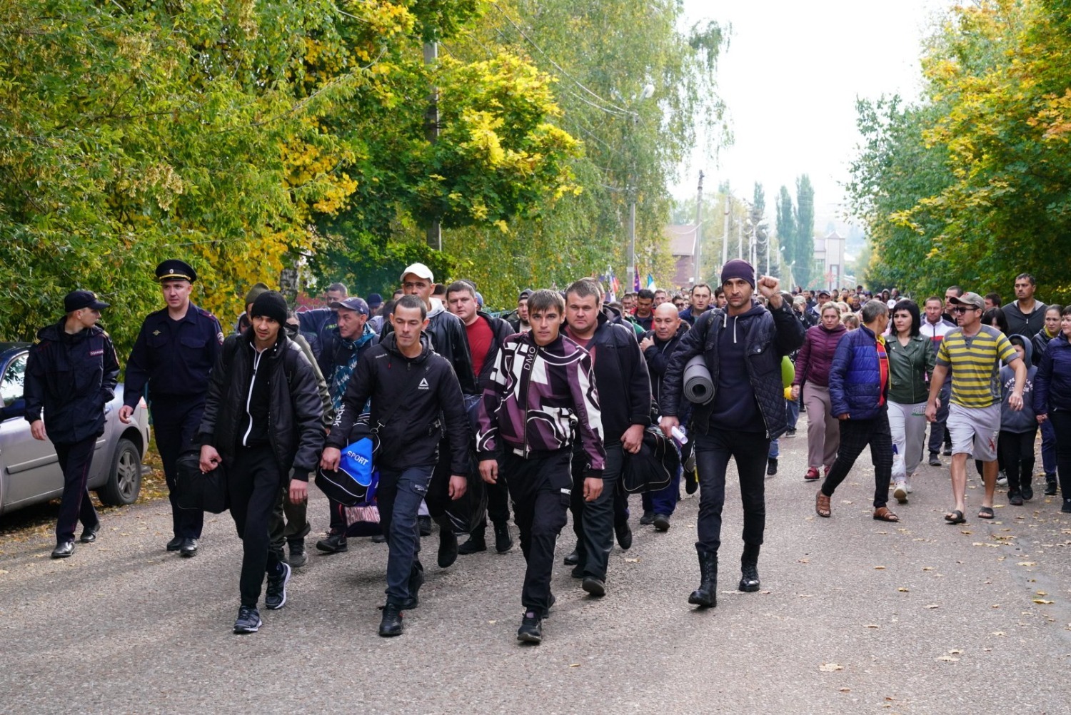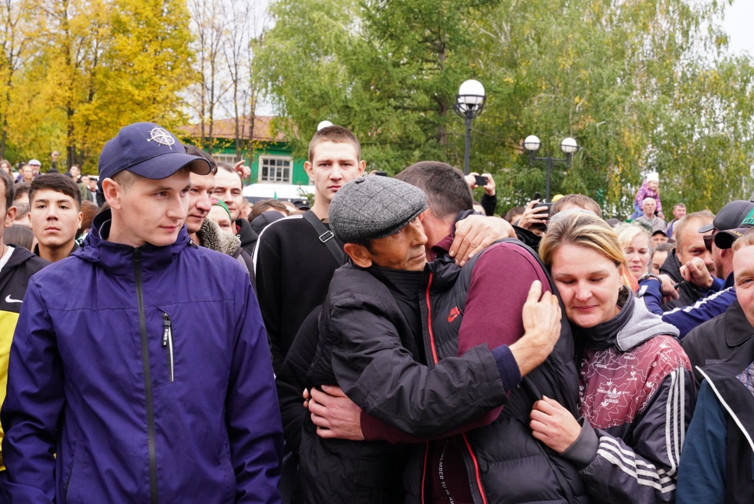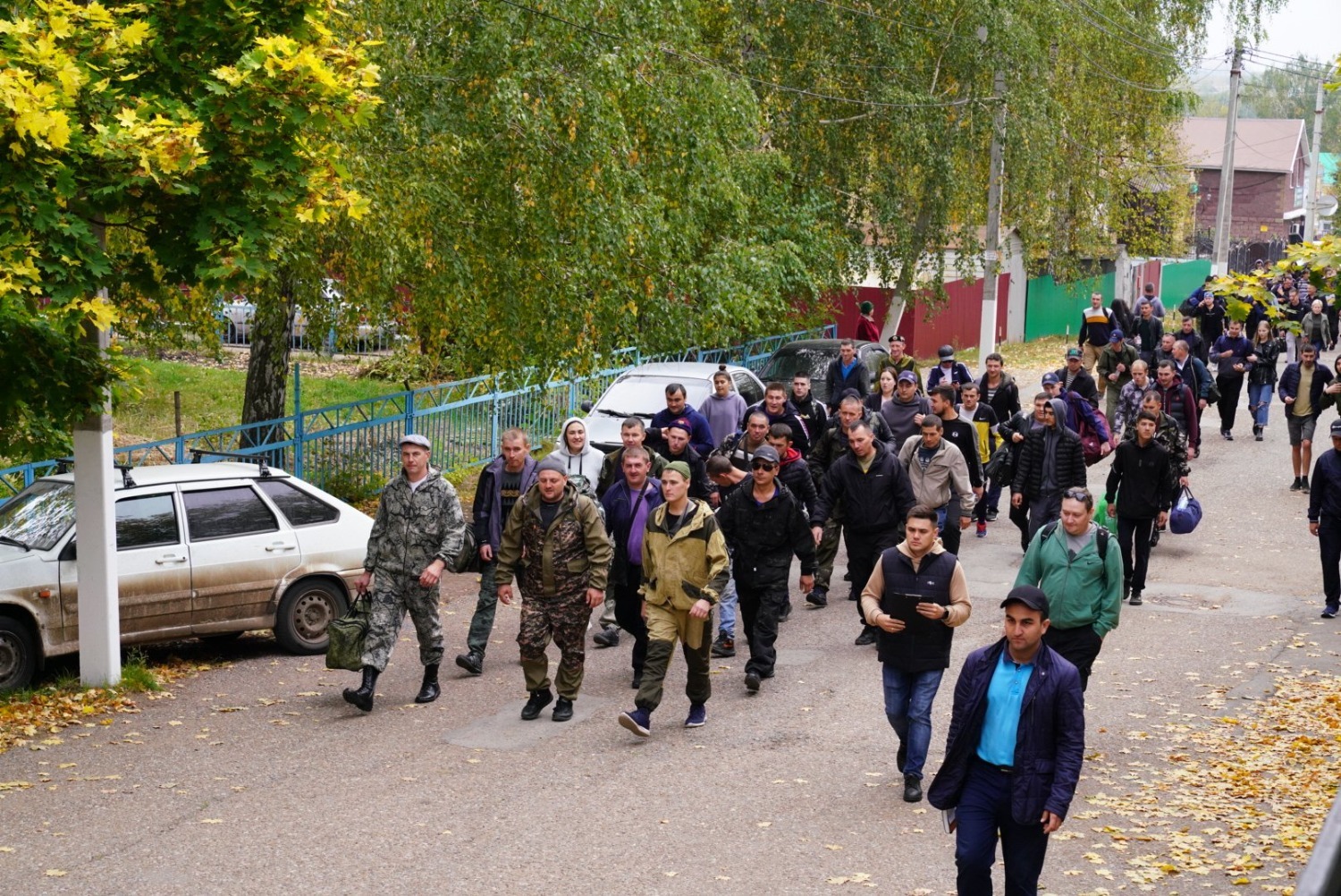 Сегодня на главной площади Кармаскалов собрались родные, друзья и коллеги резервистов, которые пришли провожать своих сыновей, мужей, братьев.
