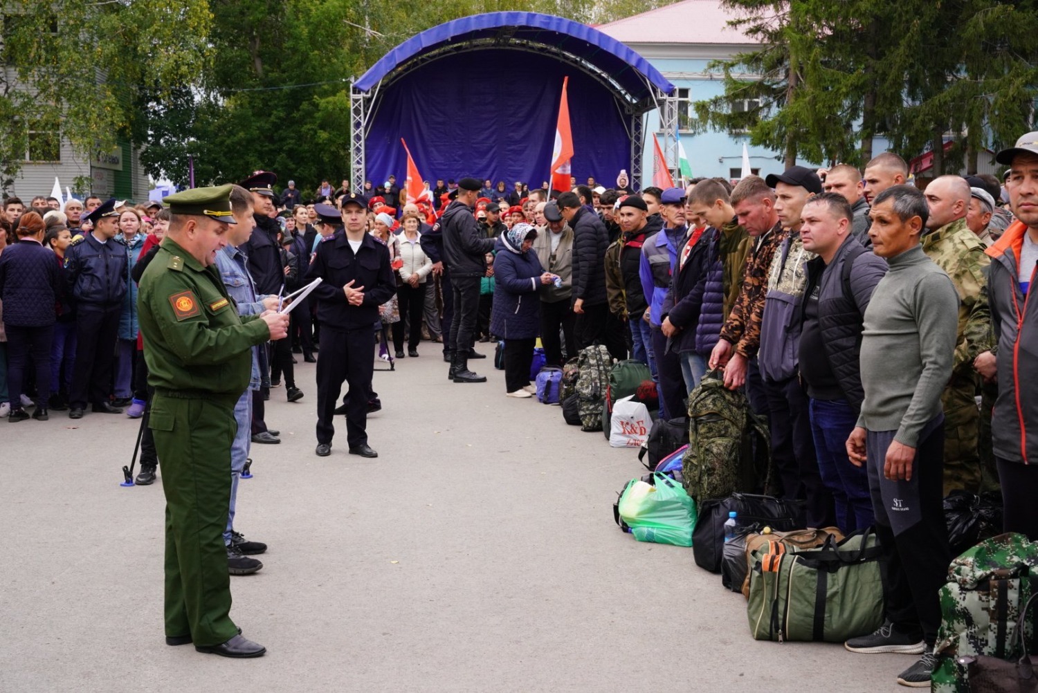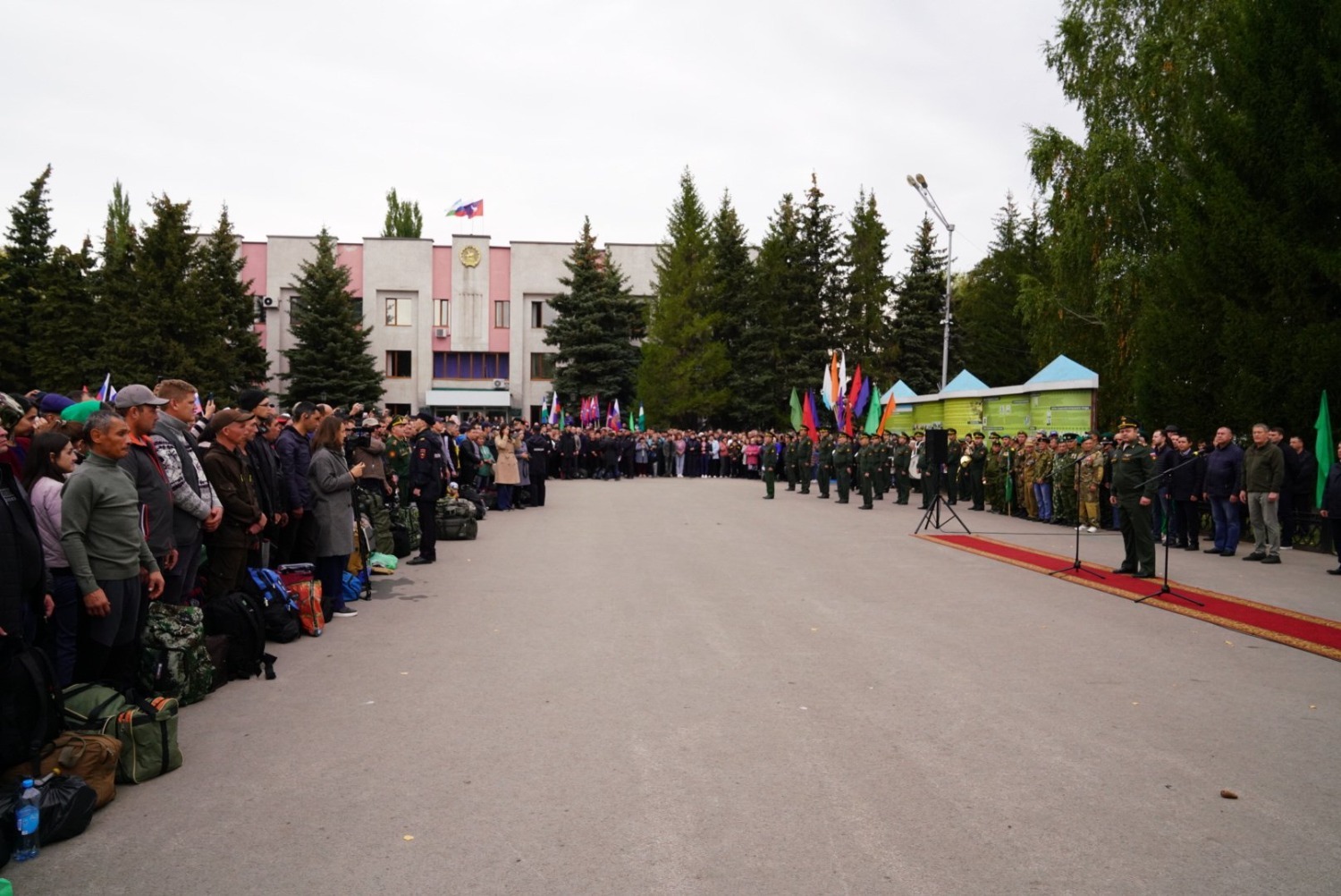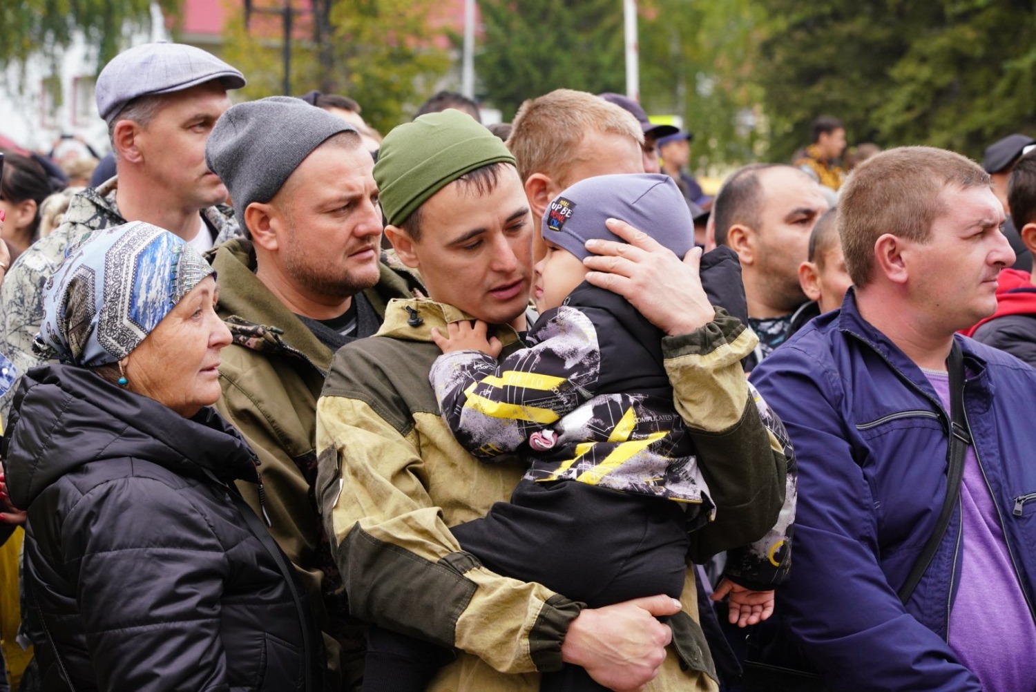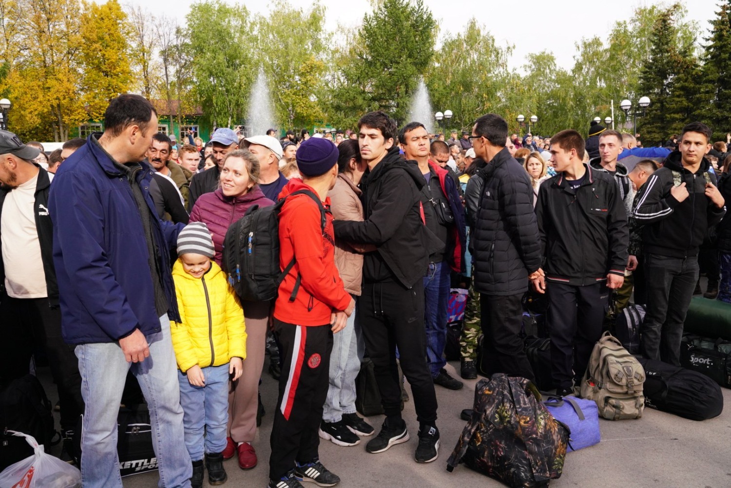 Сегодня на главной площади Кармаскалов собрались родные, друзья и коллеги резервистов, которые пришли провожать своих сыновей, мужей, братьев.