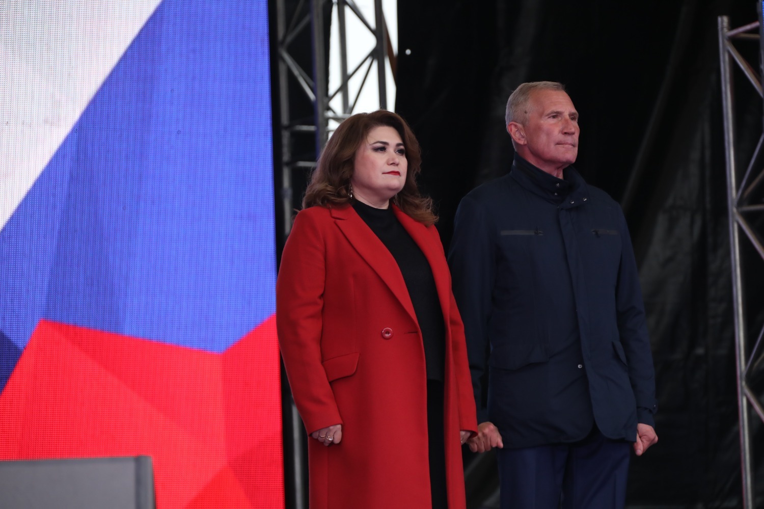 «Мы строим завтрашний день. Вместе мы сила. Мы целенаправленно идем по намеченному пути. Мы единый народ», — звучали слова со сцены. Ведущие напомнили, что в семье принято помогать друг другу, и общественная организация «Народный фронт» откроет сбор помощи не только военнослужащим, но и жителям присоединенных регионов.