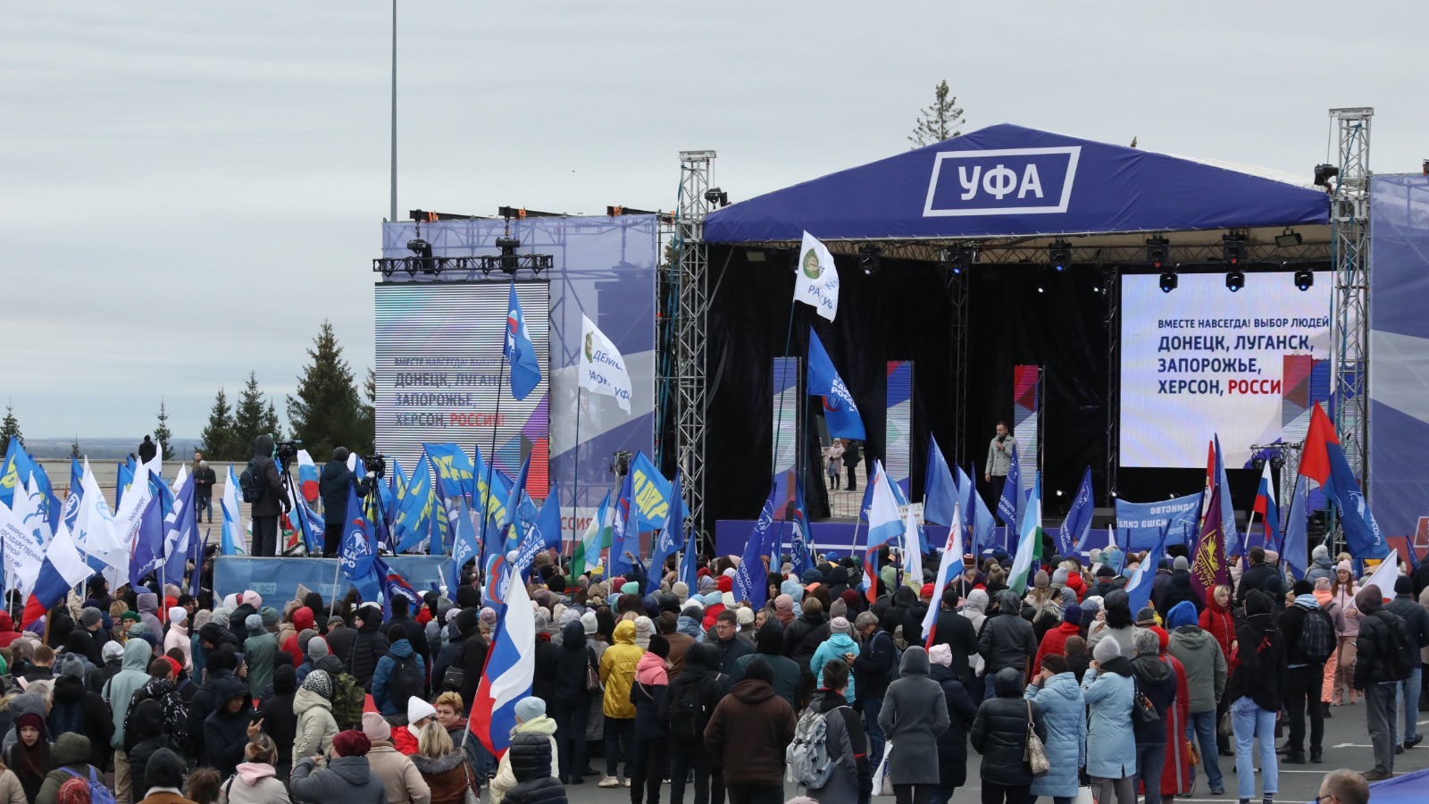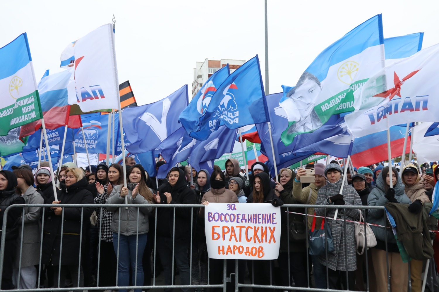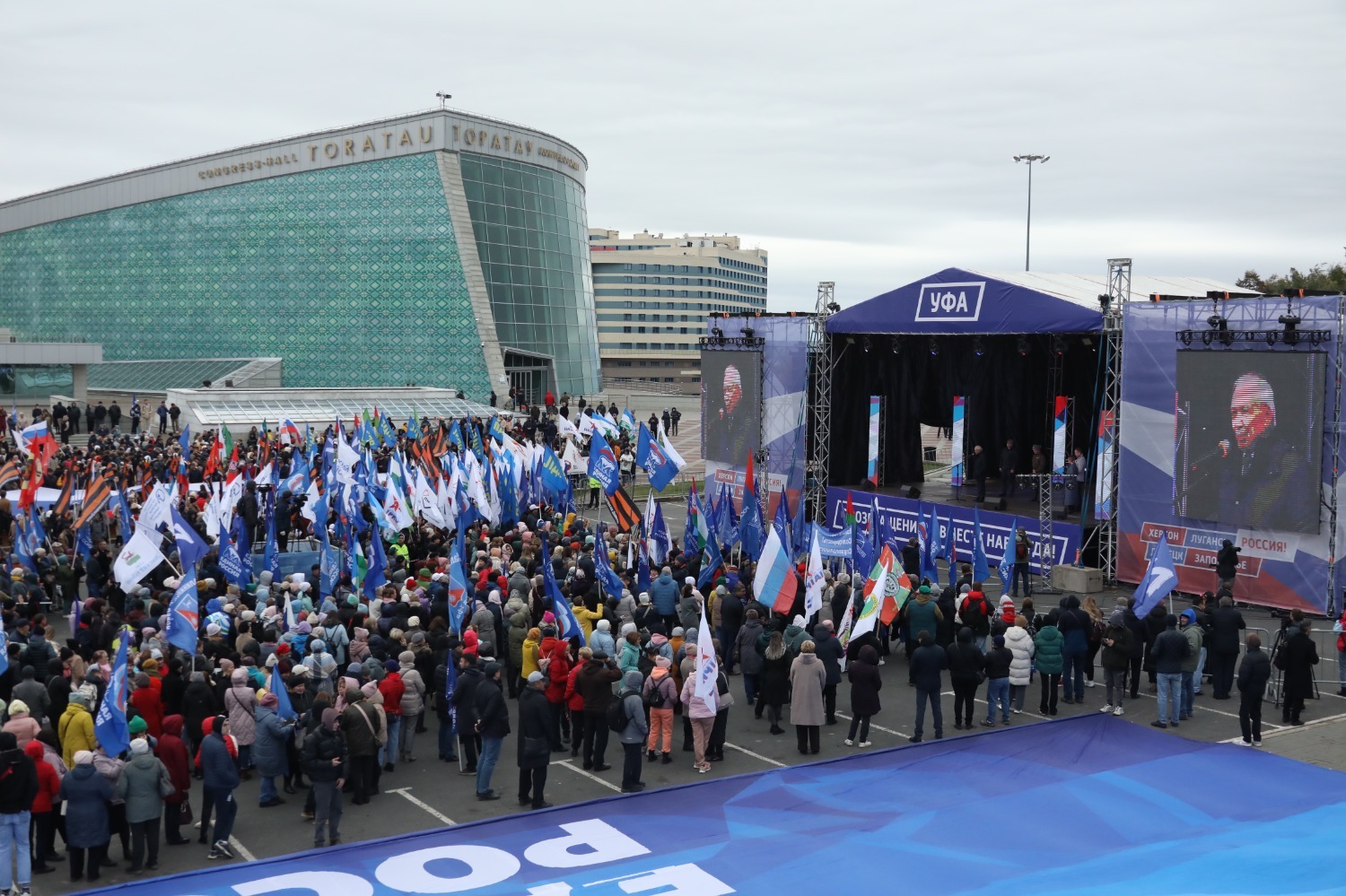 На площади перед конгресс-холлом «Торатау» в Уфе прошел митинг-концерт в честь завершения референдума, на котором решался вопрос о вхождения ДНР, ЛНР и Запорожья в состав Российской Федерации. Голосование в данных регионах проходило 23–27 сентября. За включение Луганщины в состав РФ проголосовали 98,4% жителей, Донбасса — 99,2%, Херсонской области — 87%, Запорожской области — 93%.