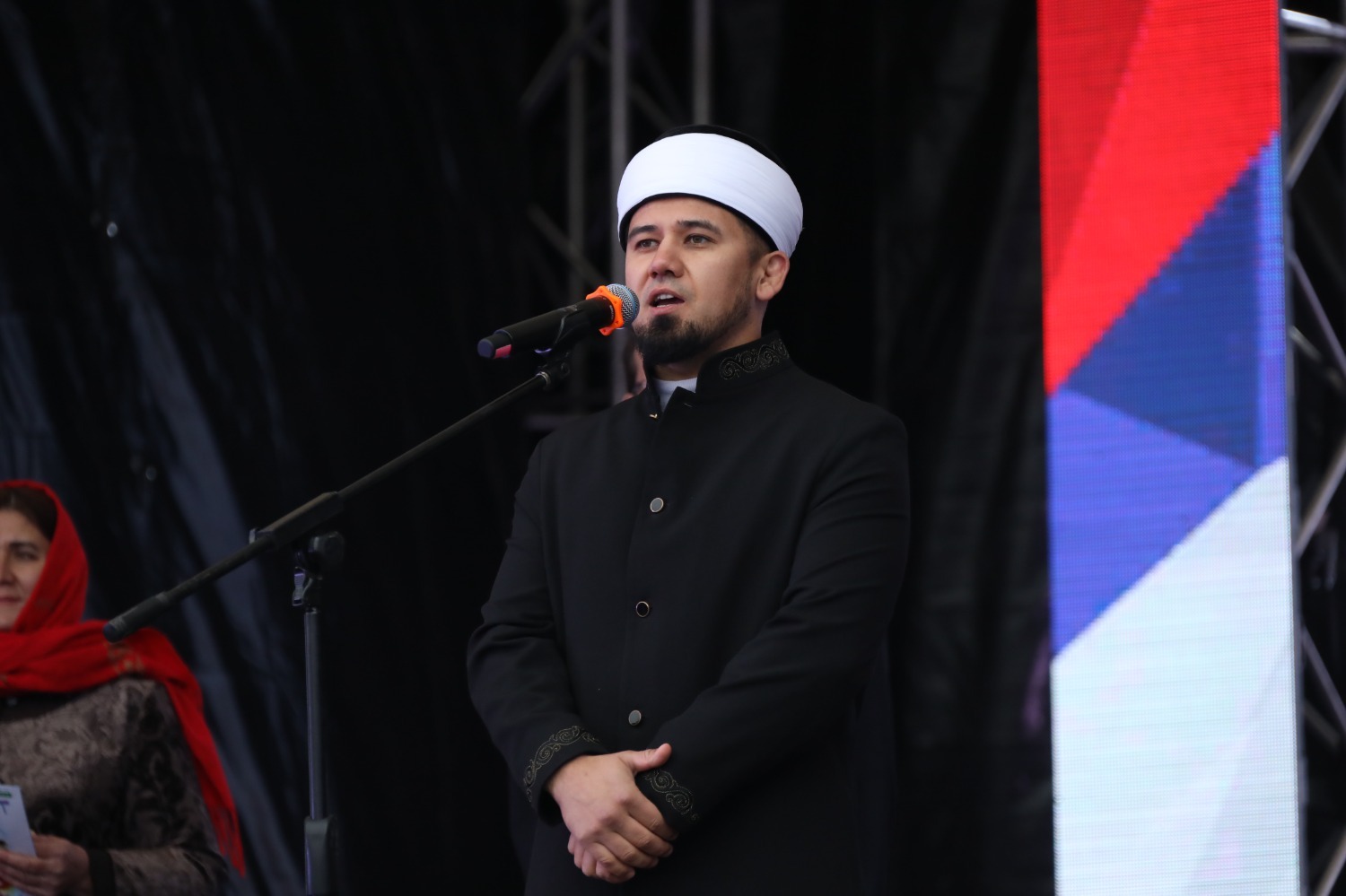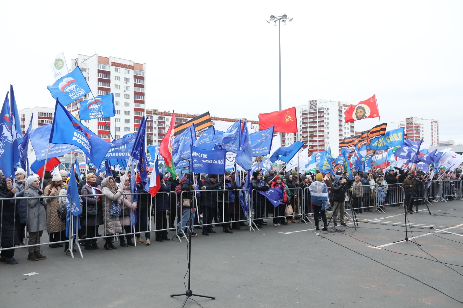 Сегодня более 20 тысяч уфимцев собрались здесь, чтобы вместе порадоваться итогам референдума. Площадь переполнена. Ведущие предложили участникам вместе исполнить гимн Российской Федерации.