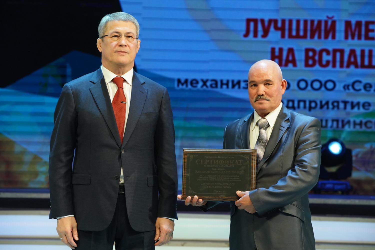 Ключи от «Лады Гранты» из рук руководителя Башкирии сегодня получили механизатор КФХ «Толмачев» Кугарчинского района Павел Толмачев, руководитель фермерского хозяйства из Бураевского района Динарик Шакиров, мелеузовский механизатор сельхозпредприятия «Ашкадарский» Артур Абдуллин, а также удостоенный ордена Трудовой Славы третьей степени СССР, хайбуллинский механизатор КФХ «Закиров» Сахиулла Билалов — основатель династии в АПК, по стопам которого пошли трое детей и пять внуков. Кроме того, ключи от автомобиля получил дуванский механизатор ООО «Сельскохозяйственное предприятие «Ярославский» Константин Гладких.