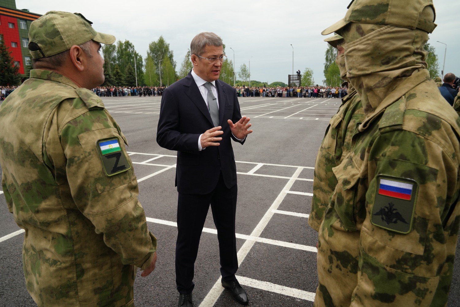 С Донбассом нас связывают тесные узы. Долгие годы мы помогаем его народу. Сегодня там работают наши врачи, строители и волонтёры. Но им нужна и воинская помощь. Мы всегда будем рядом с вами, будем поддерживать вас. Республика ждёт вас. Возвращайтесь с победой. Помните, что быть добровольцами башкирского батальона имени Минигали Шаймуратова — это очень высокая честь. В добрый путь!» — сказал Глава Башкортостана Радий Хабиров, выступая перед бойцами батальона.