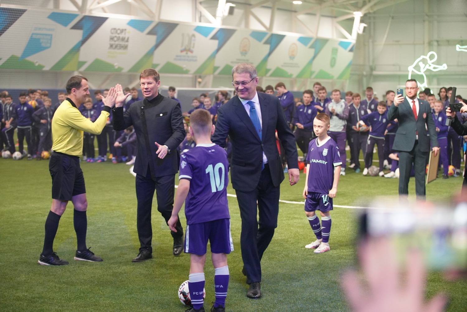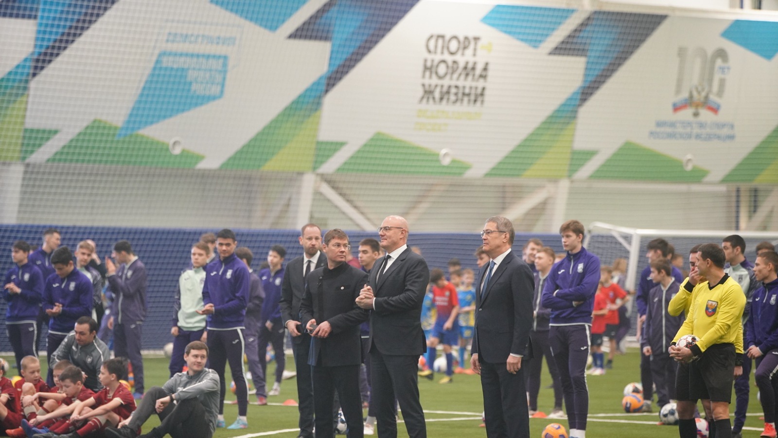 «Сегодня очень радостное событие в жизни нашей республики. Мы открываем новый футбольный манеж. Таких объектов должно быть гораздо больше. Поэтому главная задача, которую мы видим для себя – строить, строить и строить, – сказал Радий Хабиров. – Мы строим Дворец борьбы, Дворец фехтования, огромное количество ФОКов и бассейнов по всей республике. Мы точно знаем, что это даст возможность мальчишкам и девчонкам найти для себя самый желанный вид спорта, стать сильными, хорошими людьми, научиться уважать старших и поддерживать друг друга».