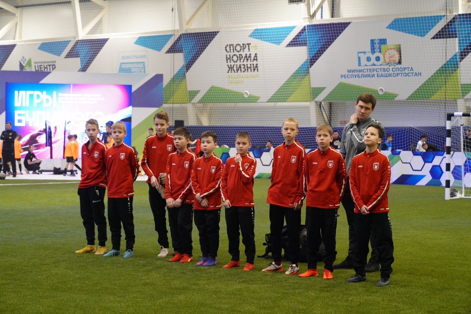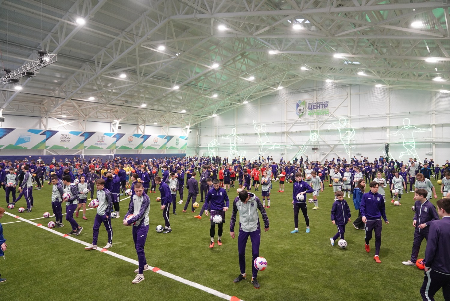 На новом манеже около 700 юных футболистов республики установили новый рекорд страны по чеканке (набиванию) мяча. Для фиксации массового достижения пригласили редакцию Книги рекордов России.