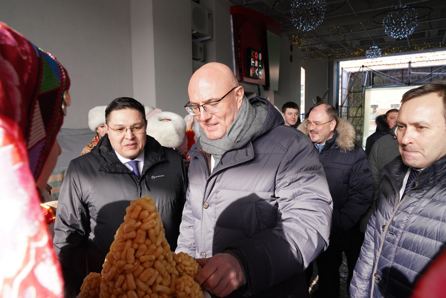 Дмитрий Чернышенко и Радий Хабиров ознакомились с тематическими зонами фестиваля, в том числе традиционными ремёслами народов республики, сувенирной продукцией, туристической техникой и оборудованием, стендами санаторно-курортных учреждений и отраслевыми проектами — «Башкирское долголетие. Туризм», «Уфимский марафон», «Башкирские каникулы».