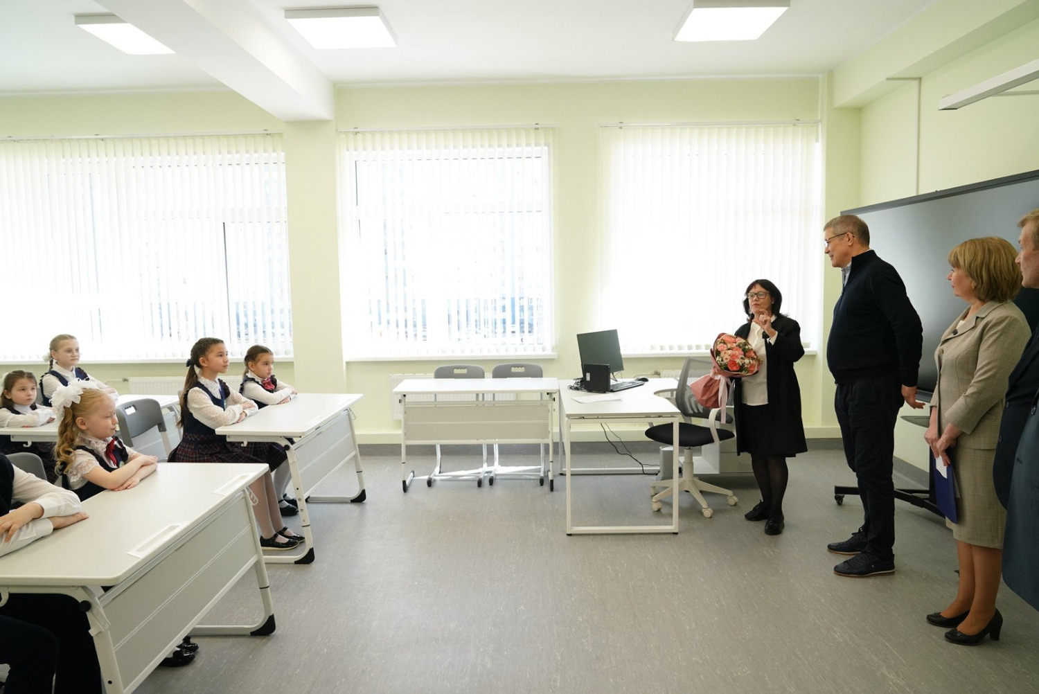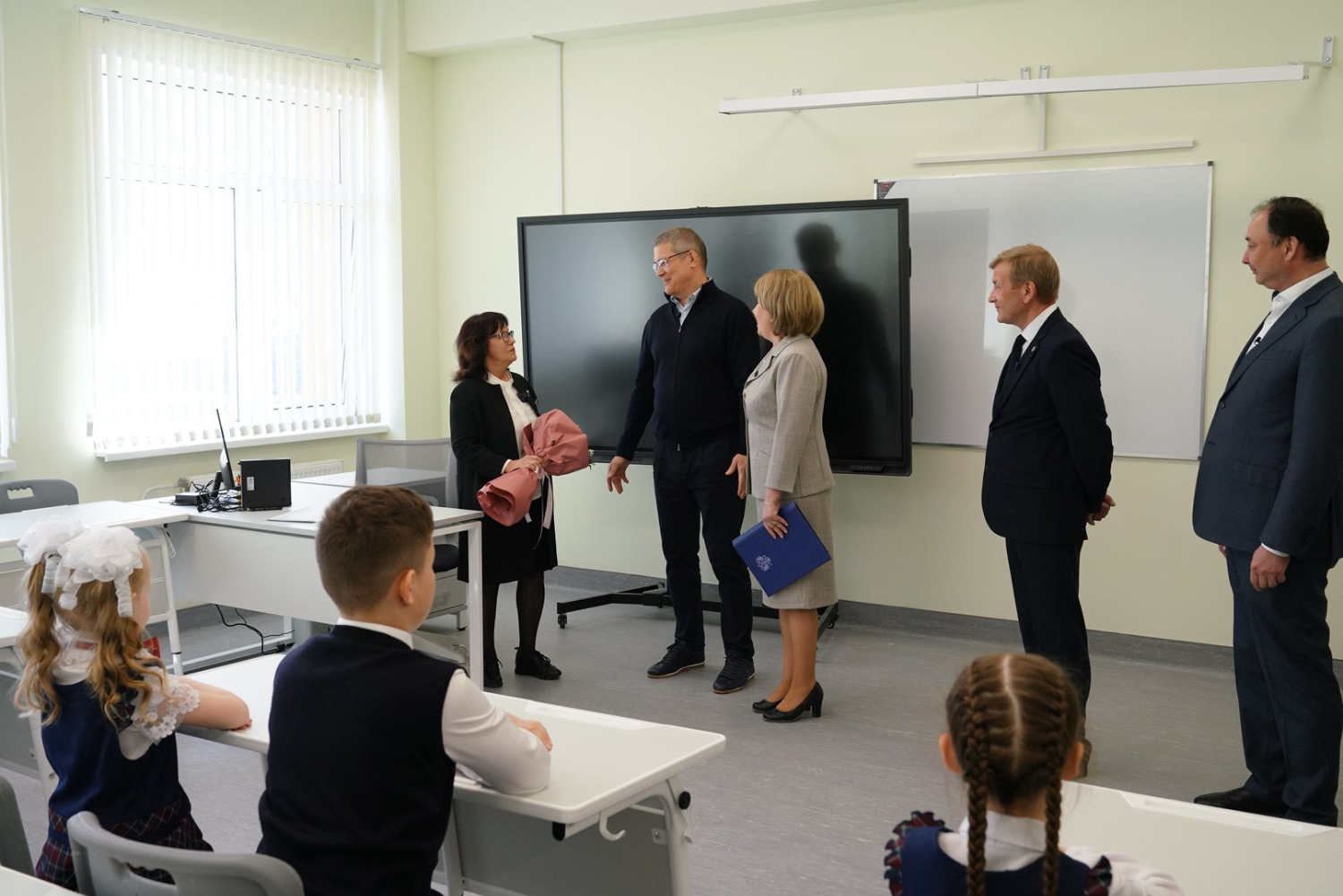 «Я получил самое настоящее удовольствие. Мы в череде наших забот очень часто не видим результата того, что мы с вами делаем. Это замечательная школа. Я хочу вас всех поблагодарить за то, что вы у нас есть. Вы выполняете непростую, тяжелую работу. С глубоким уважением и любовью к вам, переживаем за вас, чтобы вы не болели. Спасибо вам большое. Мне и нашей команде приятно, что у вас все хорошо», - сказал Радий Хабиров во время общения с учителями школы.