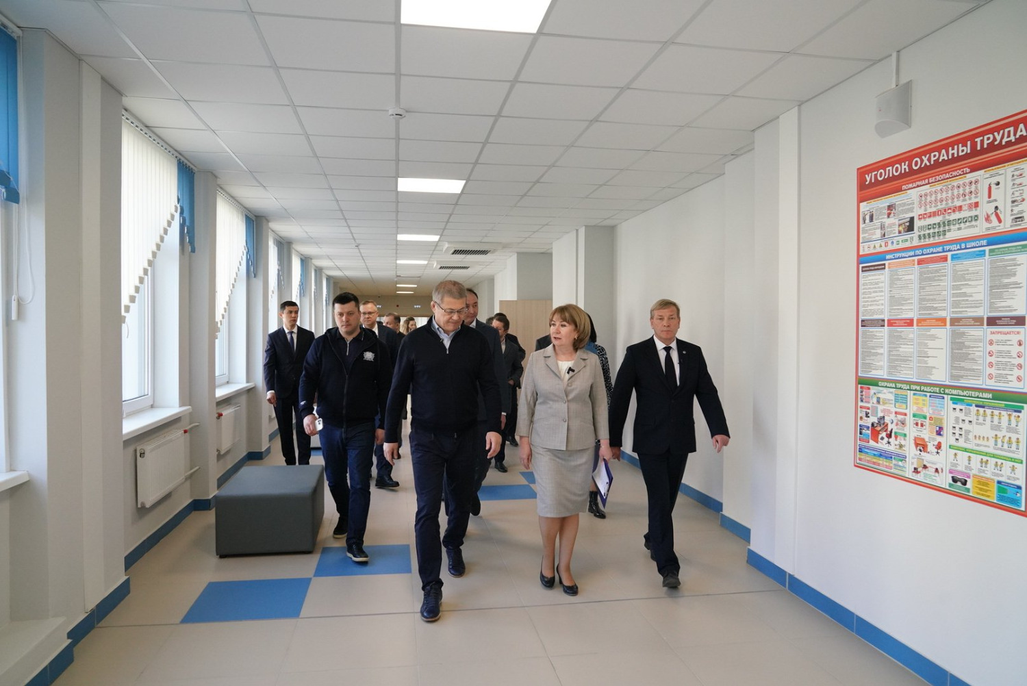 Радий Хабиров также осмотрел спортивный зал, кстати, самый большой в республике, и актовый залы на 450 мест.