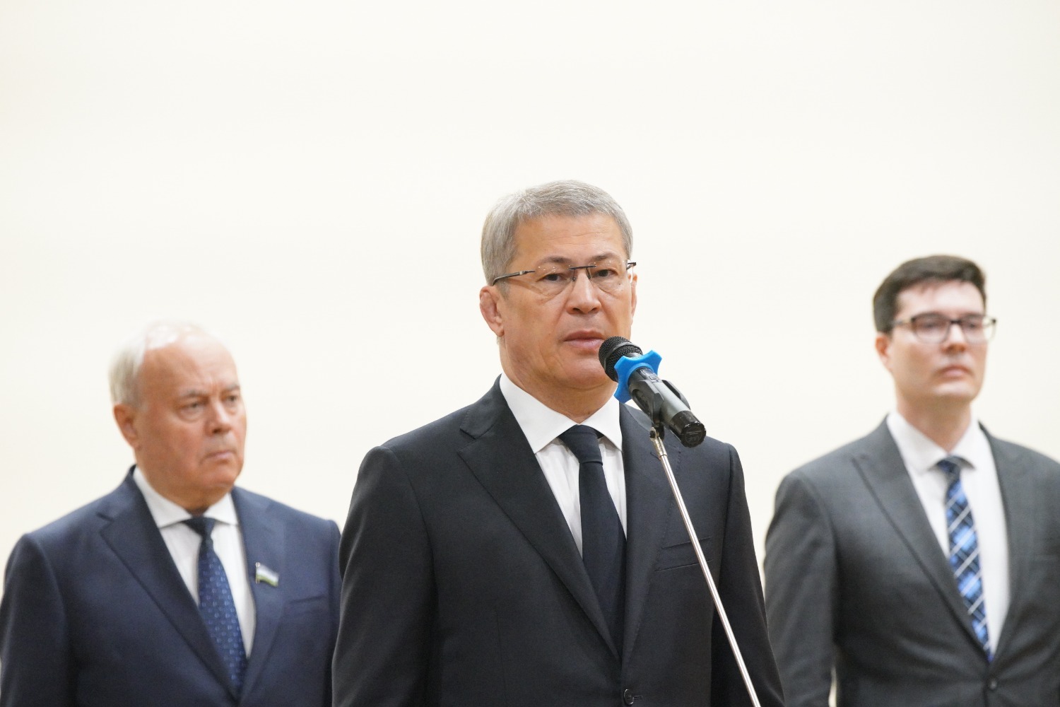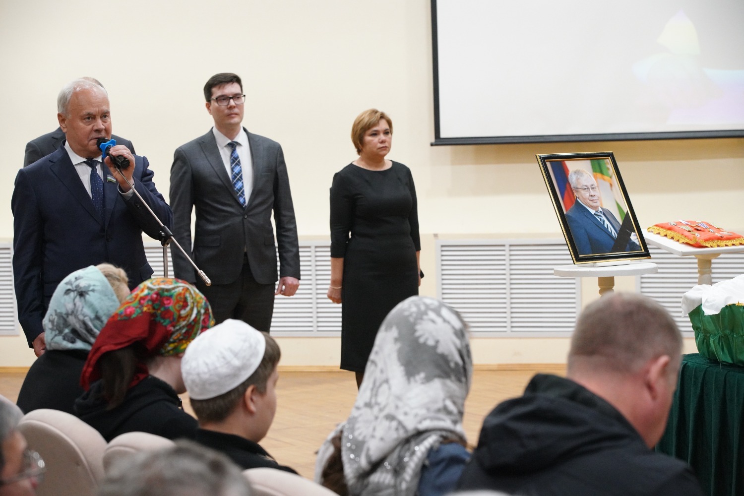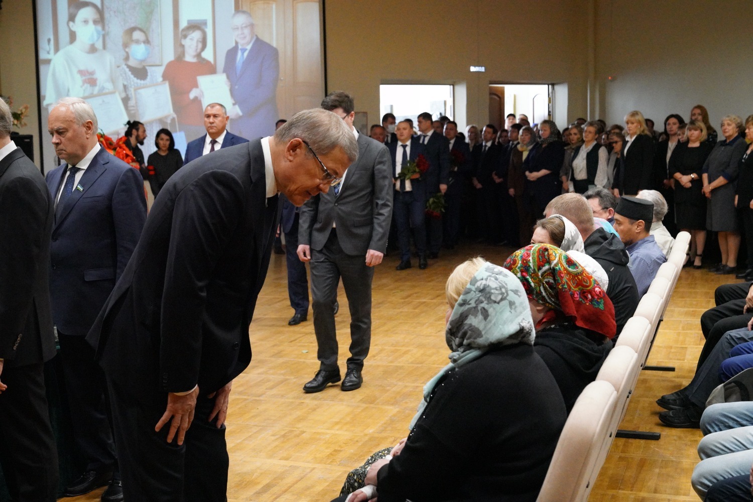 «Уважаемые товарищи! Уважаемые родные, близкие. Мы сегодня всей республикой провожаем Акрама Мухаметовича в последний путь. Он жил вместе с республикой, развивался вместе с ней, был её неотъемлемой частью. Он был нашим товарищем, принципиальным человеком, очень компетентным и хорошим руководителем.