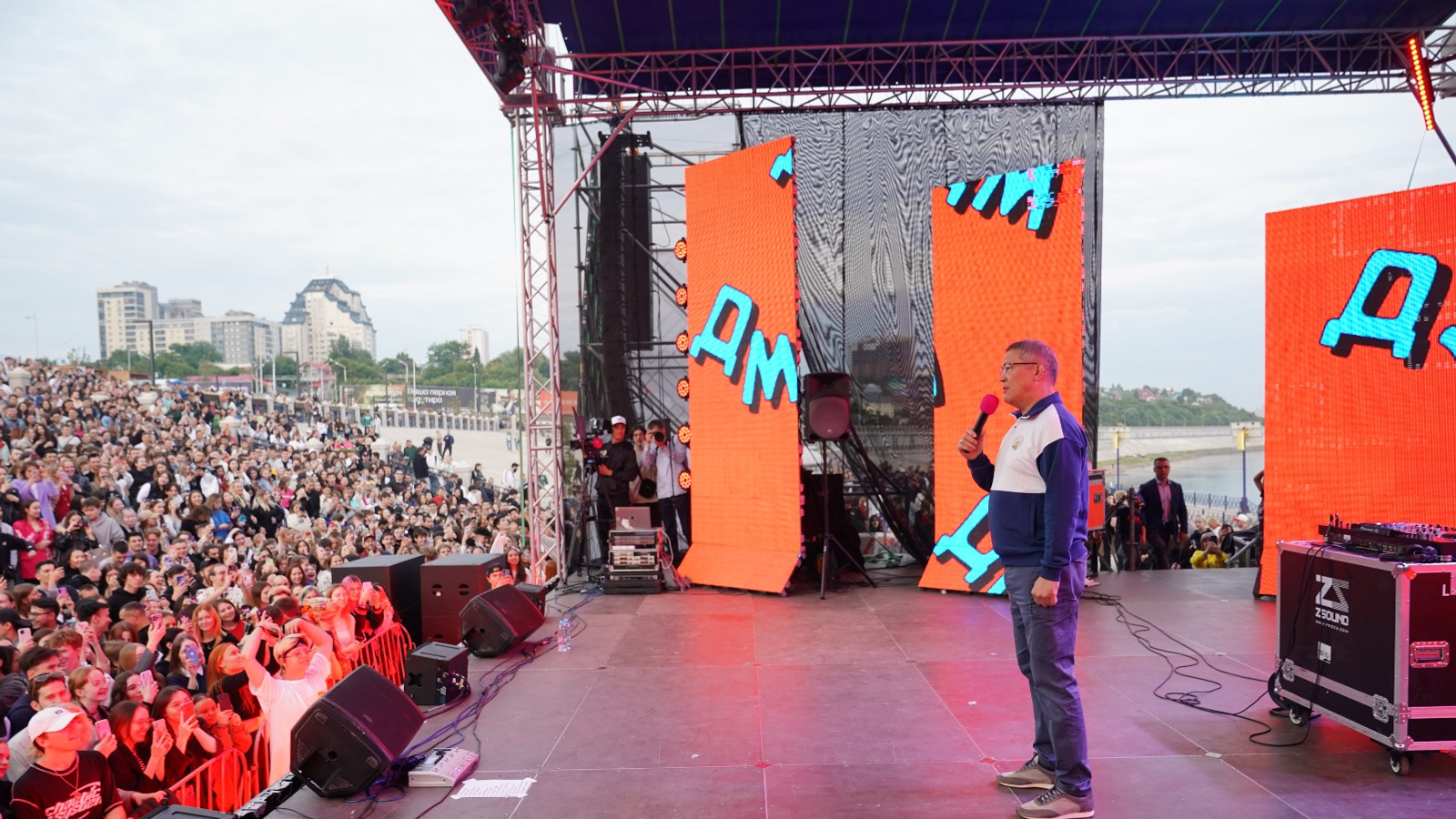 «Я сегодня пришёл поздравить вас с вашим праздником - Днём молодежи! У нас в эти дни в Башкортостане проходят замечательные мероприятия, посвящённые дружбе народов России и Беларуси. Я прошу уфимцев, башкортостанцев - давайте приветствуем команду из братской Беларуси! Они сегодня здесь. У нас добрые традиции гостеприимства. Сегодня у нас в гостях столько регионов России. Давайте их тоже вместе поприветствуем. Я вам честно скажу. В глазах старших вы одно из лучших поколений. Вы очень талантливые, очень творческие. Самое главное - вы очень сильные и очень сильно любите нашу Родину. За это вам огромное спасибо и низкий поклон. Придёт время - и вы замените наше поколение. И вы будете развивать нашу Россию, Беларусь, развивать дружбу. Я абсолютно уверен, что у вас всё получится», - сказал Радий Хабиров, обращаясь к молодым ребятам.