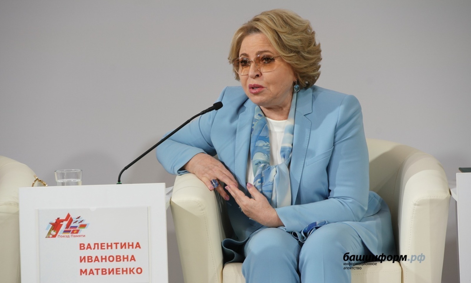 «Глава республики Радий Хабиров и его команда сделали всё, чтобы нынешний Форум регионов стал самым масштабным. Мы уже посетили ряд мероприятий. Хочу отметить, что люди в Башкортостане очень открытые, искренние и доброжелательные. И, конечно, надеюсь, что вам понравится Уфа. Потому что то, как много Глава республики и его команда делают для развития города и региона, невозможно переоценить. Уфа – это современный город с развитой инфраструктурой и комфортными условиями для проживания. Это один из красивейших городов нашей страны. Это все стало возможным благодаря усилиям Главы. Я знаю, какой нелегкий труд у глав регионов, когда ты несешь ответственность с утра до ночи за жизнь людей, за то, что происходит в регионе. И у Главы республики это очень хорошо получается», - сказала Валентина Матвиенко во время общения с участниками культурно–образовательного проекта «Поезд памяти».