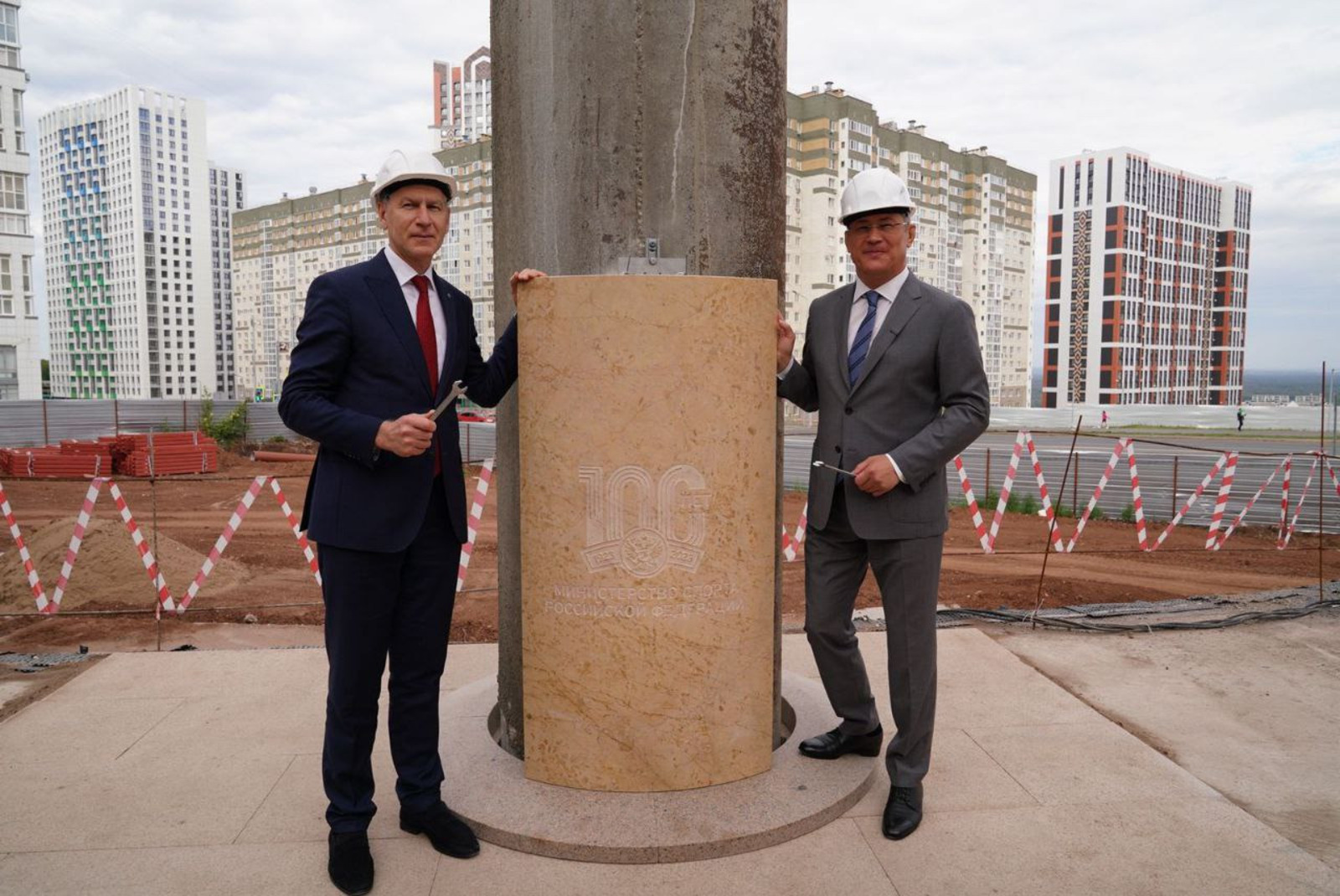 «С министром спорта страны Олегом Васильевичем Матыциным установили первую гранитную плиту на колонне Центра борьбы в Уфе. Посвящена она 100-летию Минспорта России, - написал в соцсетях Глава республики Радий Хабиров. - Работы здесь идут очень хорошими темпами. В следующем, юбилейном для Уфы году наш Дворец борьбы откроем.