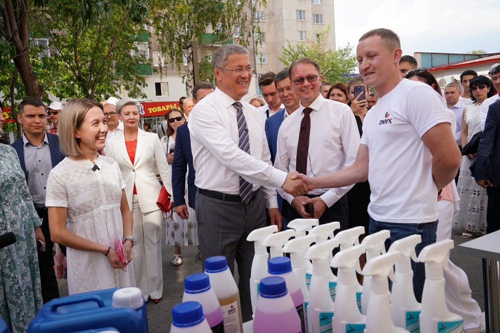Радий Хабиров ознакомился с продукцией пищевой и перерабатывающей промышленности, сувенирными товарами, изделиями народных промыслов. Предприятия легпрома республики представили специализированную одежду для различных отраслей экономики, экипировку для оперативных служб и Вооружённых Сил России.