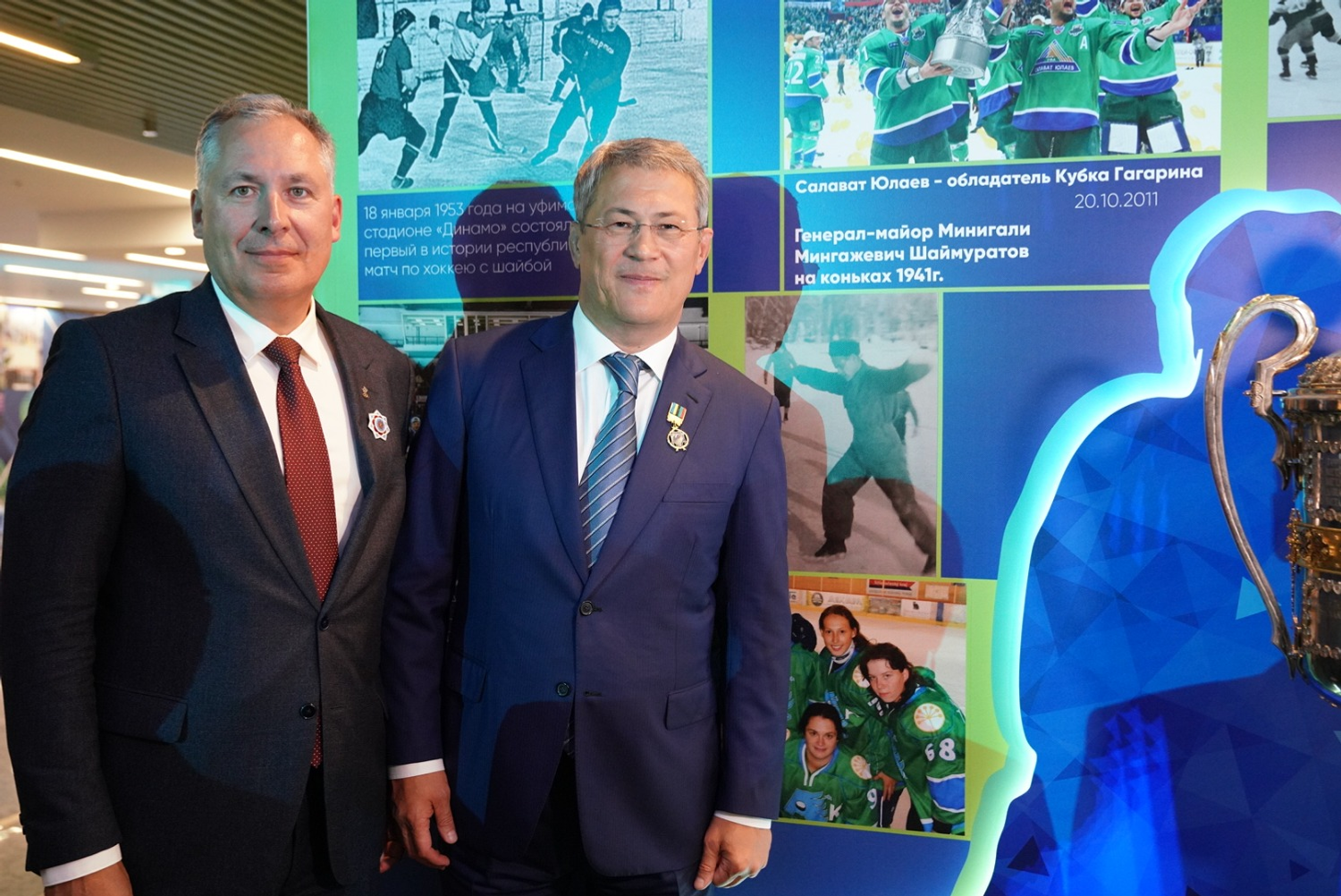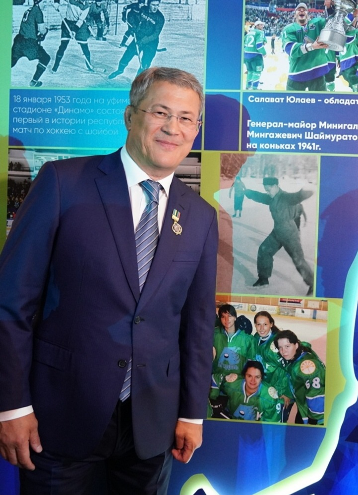 Сегодня в Уфе после завершения торжественного собрания Радий Хабиров осмотрел выставку, посвященную 100-летию минспорта. Ее разместили в фойе ГКЗ «Башкортостан». В частности, Главе региона показали архивное фото, датированное 1941 годом, на которой запечатлен генерал-майор Минигали Шаймуратов, катающийся на коньках.