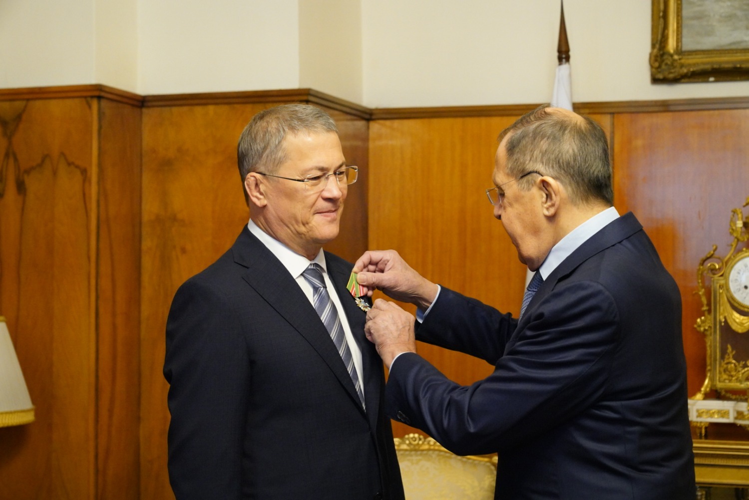 В ходе встречи Сергей Лавров вручил Радию Хабирову нагрудный знак «За вклад в международное сотрудничество». Руководитель региона поблагодарил главу МИД России за высокую оценку и отметил, что укрепление внешнеэкономических связей – один из приоритетов развития республики.