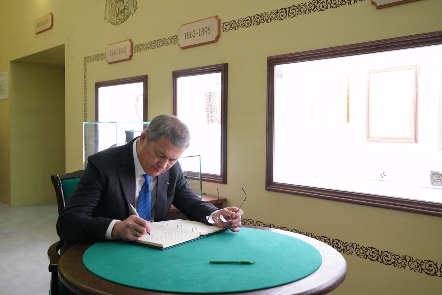 Глава республики осмотрел экспозиции павильона Сбербанка и оставил запись с пожеланиями в книге почётных гостей.