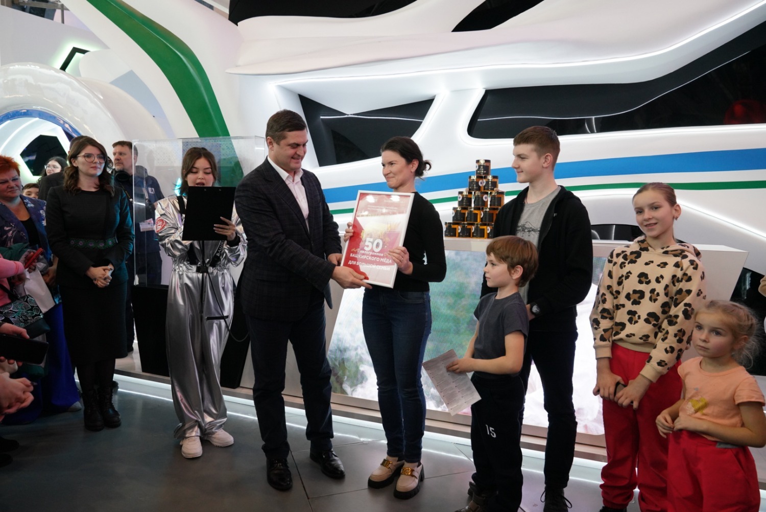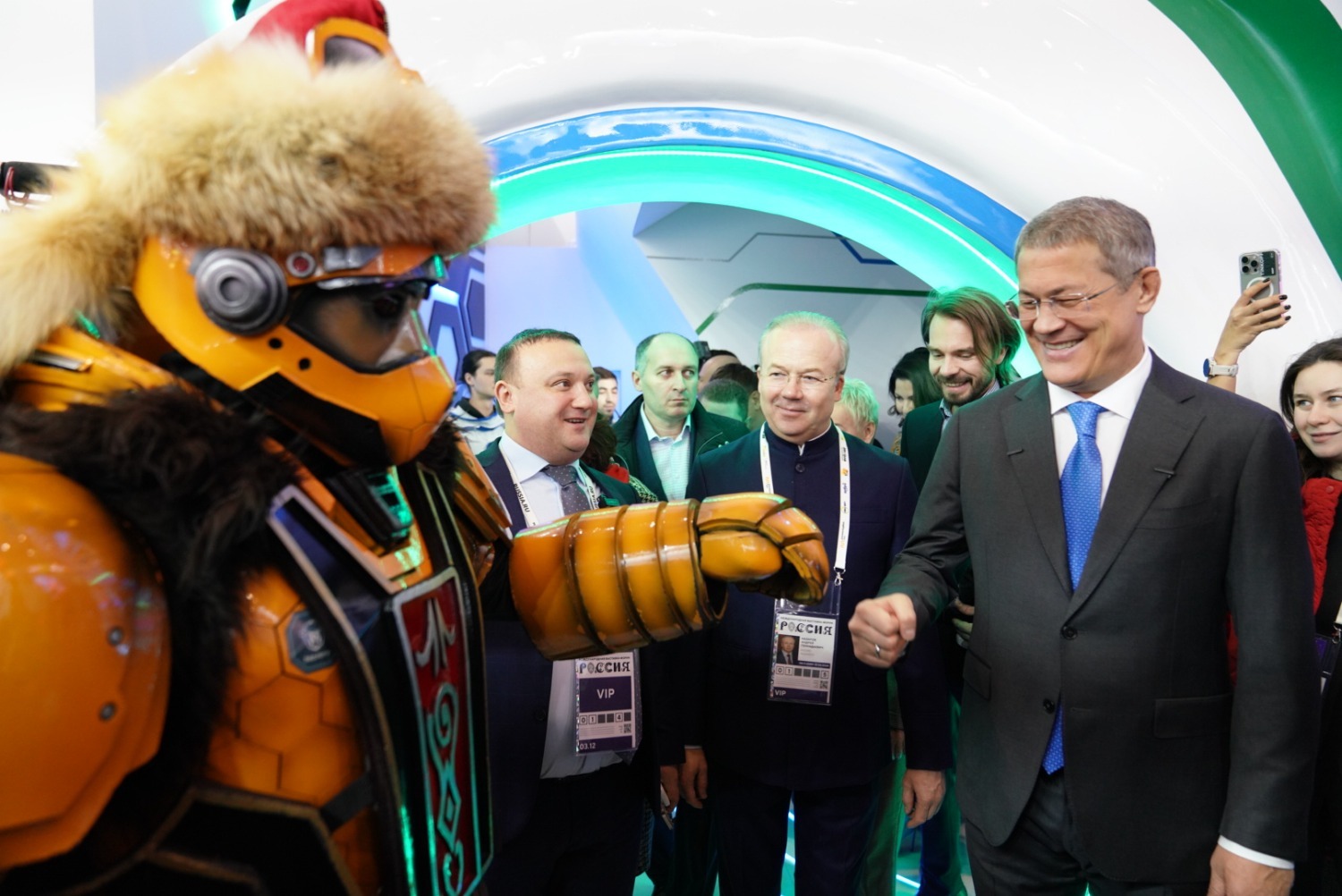 «Маленького пока еще нет. А вот старших обязательно привезём и дочерей обязательно приведу – они уже постарше. Здесь есть и для совсем маленьких, и для взрослого человека. Но важно, что мы уже приняли решение – 2000 наших ветеранов по программе «Башкирское долголетие» мы перенаправим именно сюда. У нас уже 50 первых школьников из 2500 тысяч школьников по программе «Школьный туризм» уже здесь побывали. Мы на каникулах и до завершения выставки направлять их сюда. Поэтому важно, чтобы как можно большее количество людей посмотрели и получили эстетическое и интеллектуальное удовольствие. Порадовались – какая у нас великая и замечательная страна», - сказал Радий Хабиров, отвечая на вопрос агентства «Башинформ».