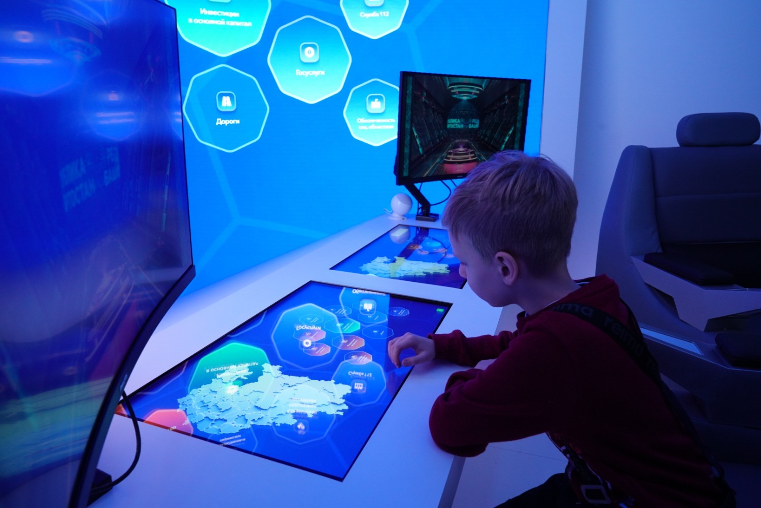 Внутри разместили интерактивные панели, которые знакомят гостей со сферой туризма, развитием придорожного сервиса, а также с Центром управления республикой. Зона виртуального путешествия позволяет увидеть интересные достопримечательности Башкортостана, например, знаменитую пещеру Шульган-Таш или памятник Салавату Юлаеву.