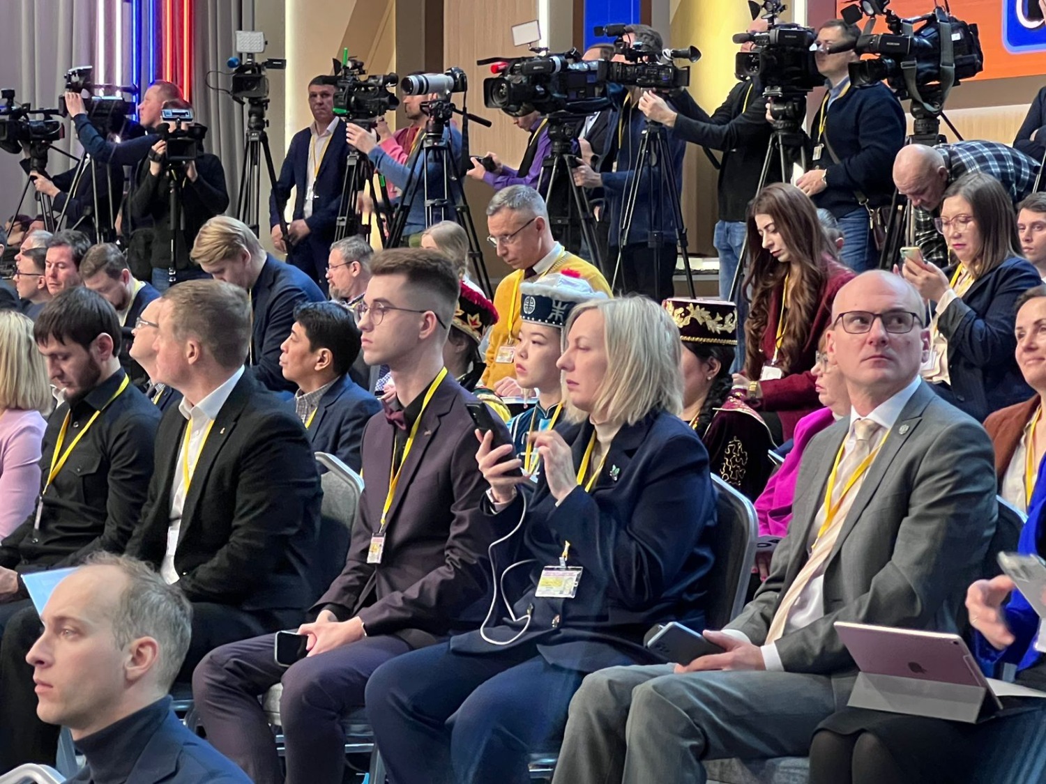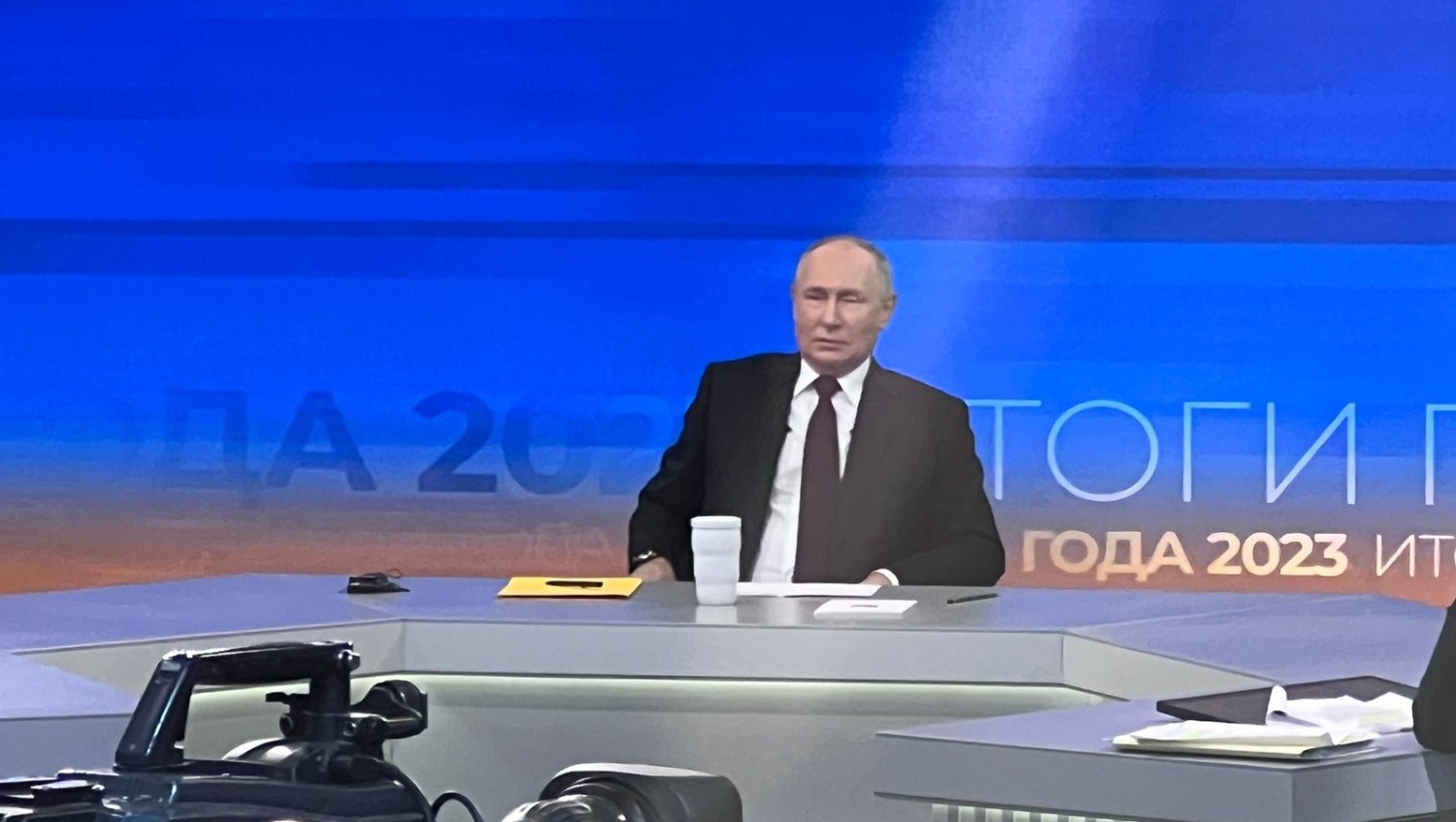 В 12.08 в зал вышел президент. Поздоровался с ведущими. Занял свое место за столом. Начал с главных тем: СВО, экономика страны, промышленность, банковская система, выплаты, доходы населения, зарплаты, продолжительность жизни.