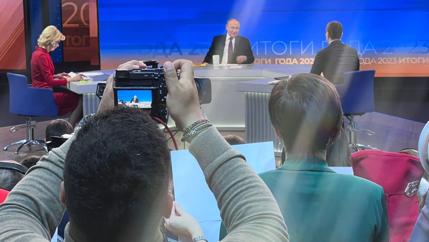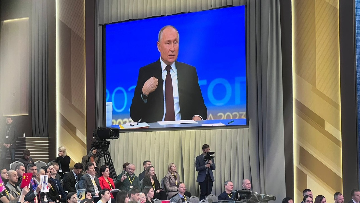 Чувствуя, что президент завершает отвечать на вопрос, таблички в зале начинали сначала медленно, но верно подниматься вверх. Затем они и вовсе не опускались, в том числе и нами. А потом, когда уже ничто не помогало, журналисты стали выкрикивать свои города, броские слова. Путин пару раз попросил не разводить какофонию: прислушались, но потом снова «сорвались». Песков внимательно вглядывался в зал, думая, кому предоставить возможность задать очередной вопрос. Чаще всего его выбор падал на федеральные СМИ: РБК, «Комсомольская правда», «Мир», РИА Новости, RT, «Коммерсантъ».