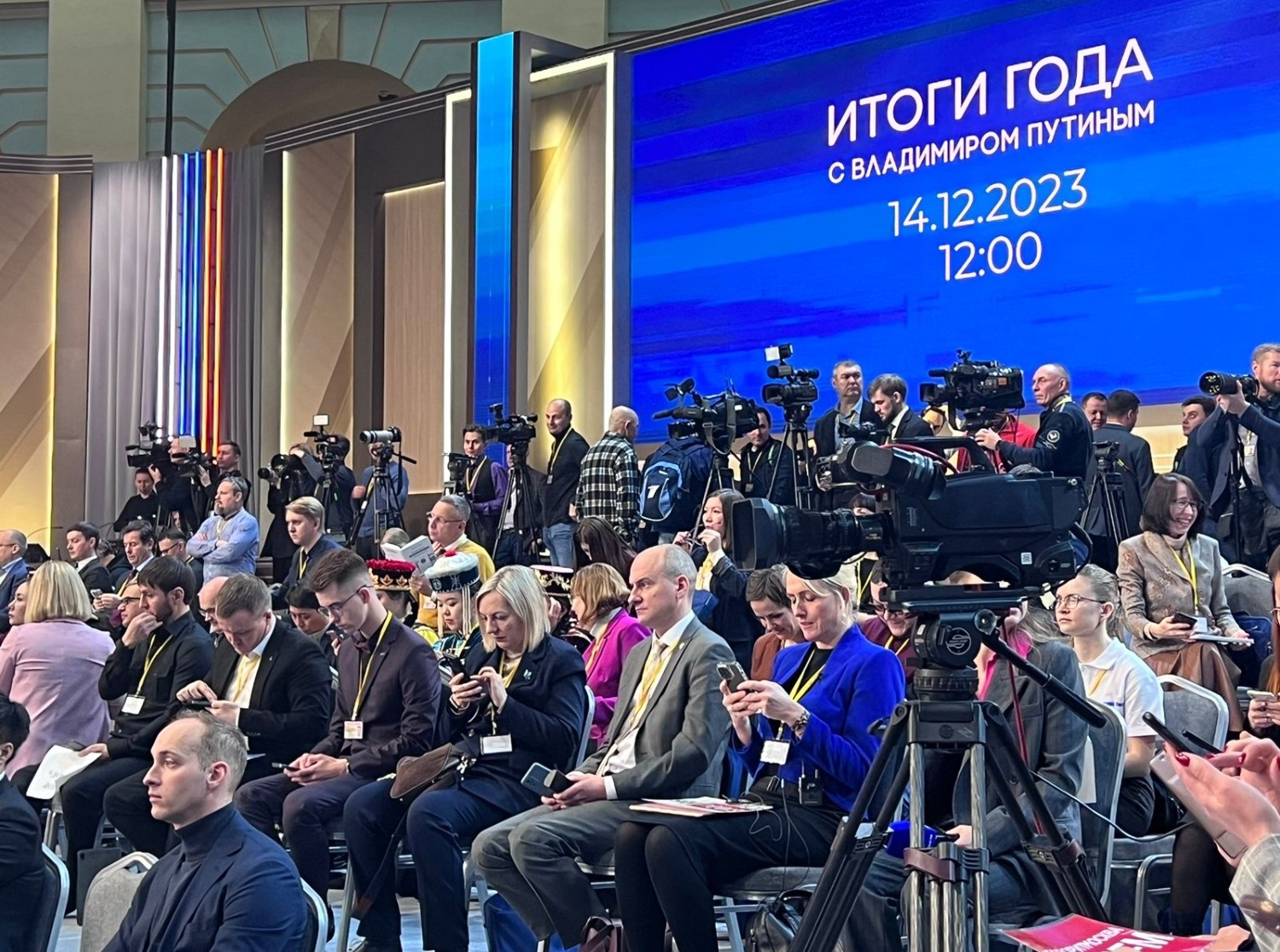 В нынешнем году на пресс-конференцию от Башкирии аккредитовались три СМИ — это корреспонденты информагентства «Башинформ», телеканала БСТ и газеты «Янаульские зори». Задать вопрос Путину — большая лотерея, и в этот раз, к сожалению, не вышло. Но эта пресс-конференция не первая и не последняя, поэтому у башкирских журналистов все только впереди. Между тем журналистка «Башинформа» подготовила большой фоторепортаж с интересными моментами итогового события. Садимся поудобнее, начинаем…