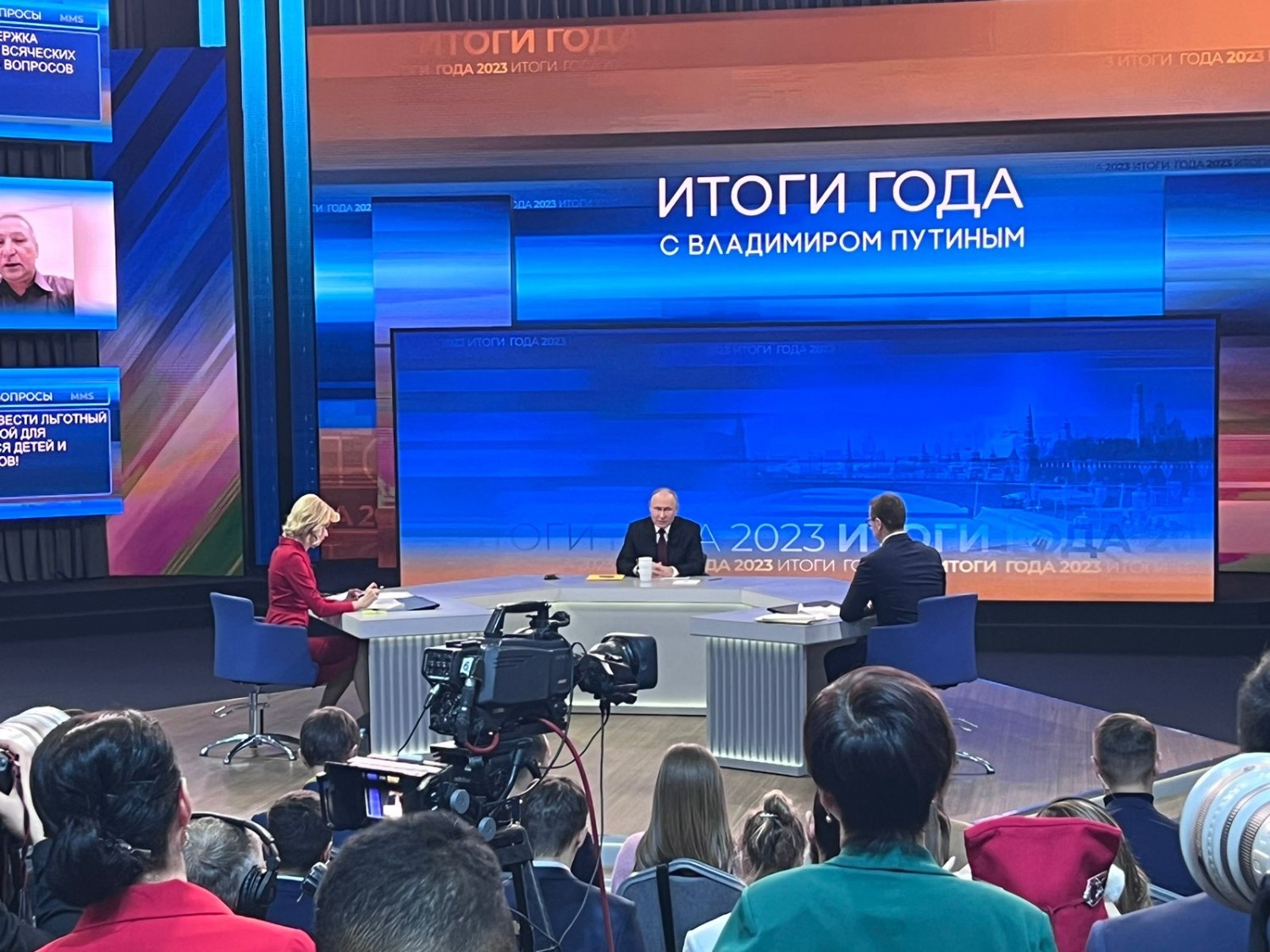 Первые час-полтора были «пропитаны» темой СВО: помощь ветеранам, женщины на фронте, медкомиссии, нехватка врачей, народная поддержка бойцов, ЧВК и их статус, волонтеры и их поддержка в ДНР. Далее зазвучали темы: здравоохранения (корь, нехватка вакцин), спорта (олимпиада, спортзал для детей), автопрома (китайские машины захватывают рынок), поддержки семей с детьми (ипотека, льготы), газификации, курса рубля, уголовных преследований, роста цен за ЖКУ, авиации (иностранные самолеты, безопасность полетов). Мигранты, традиционные ценности, аборты, платные дороги, выпуск брендовой одежды в регионах, микрофинансовые организации – глава государства постарался объять необъятное.