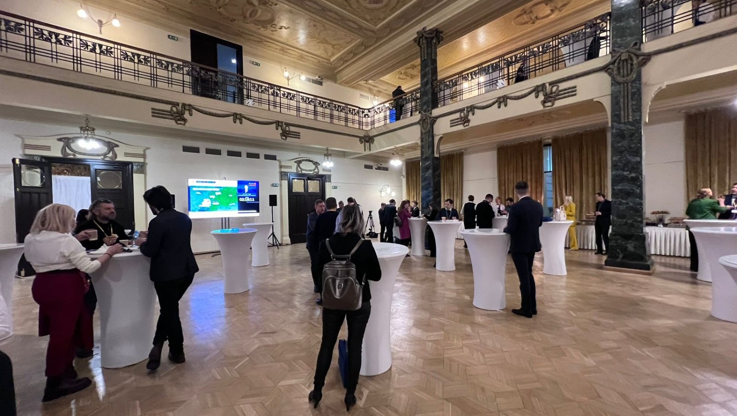 Новогоднее настроение создали нарядные ёлки. Немного расслабиться, подумать о вопросах, пообщаться с коллегами можно было в условной «зоне ожидания» на белых диванчиках.